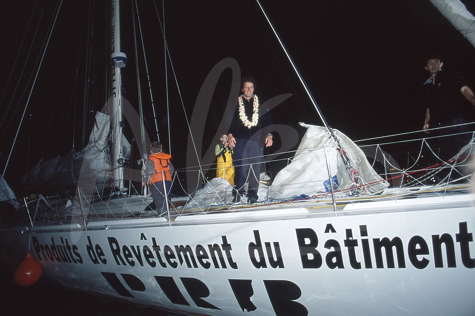 | Description | Arrival for winner Michel DESJOYEAUX, PRB, of the round-the-world solo sailing yacht race Vendee Globe in Les Sables d'Olonne, West France, on February 10th, 2001 in 93D 3H 57MN - © Bernard Rubinstein / Alea |