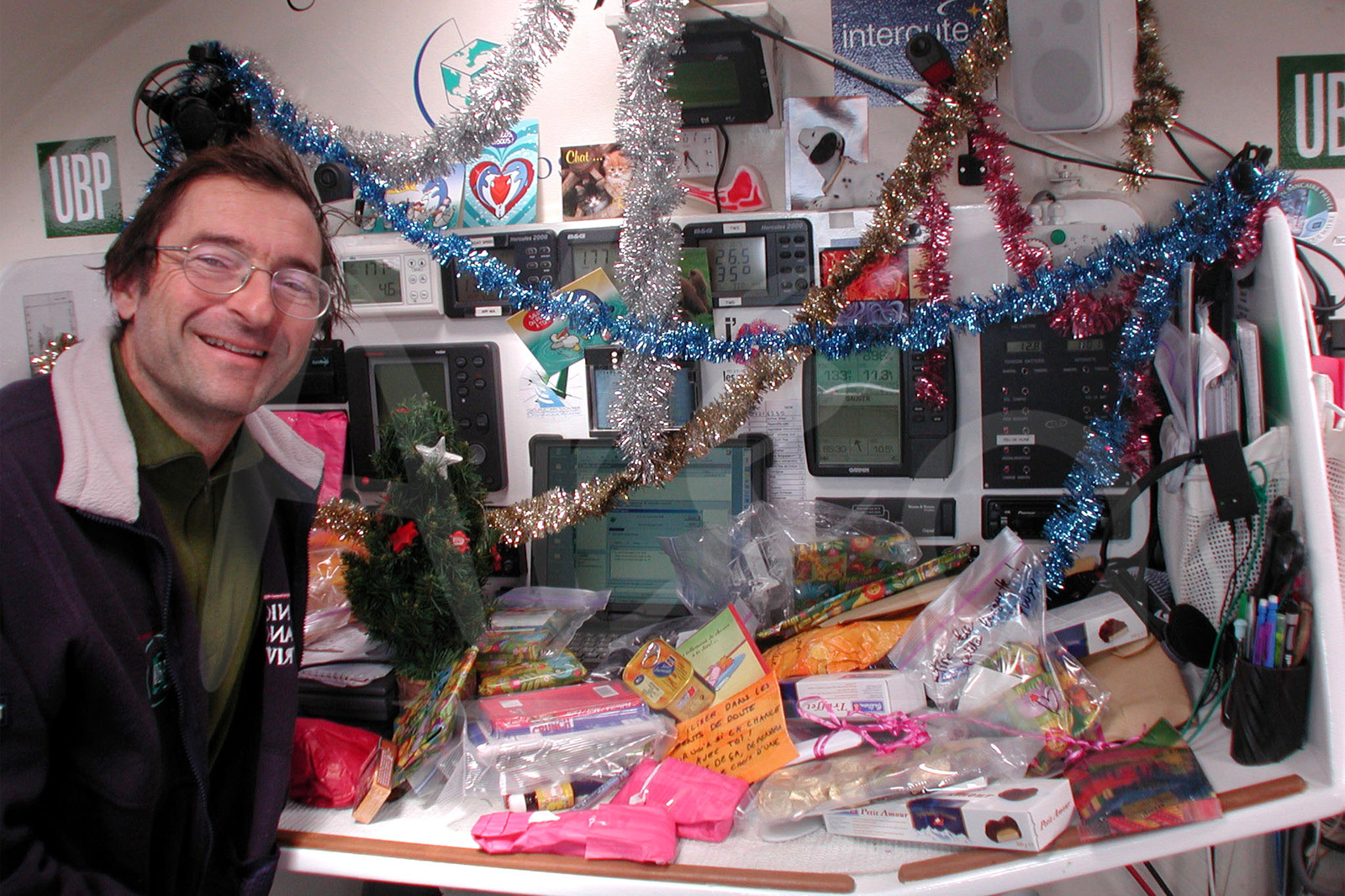 | Description | Swiss skipper Dominique Wavre, aboard UBP, during Christmas, self portrait during the solo round the world sailing race Vendee Globe, 4th edition, on December 25th 2000 - Photo Dominique Wavre / Alea.. |