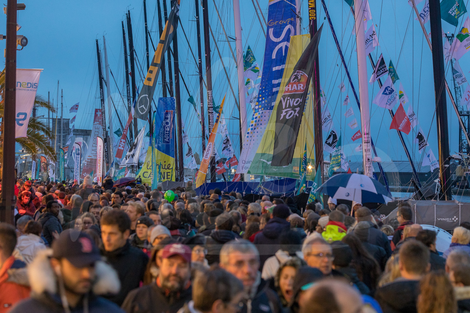 | Description | Public on imoca pontoons during the pre-start of the Route du Rhum 2018, on November 1st, 2018 in St-Malo, north Brittany, France - Photo Jean-Marie Liot / Alea |