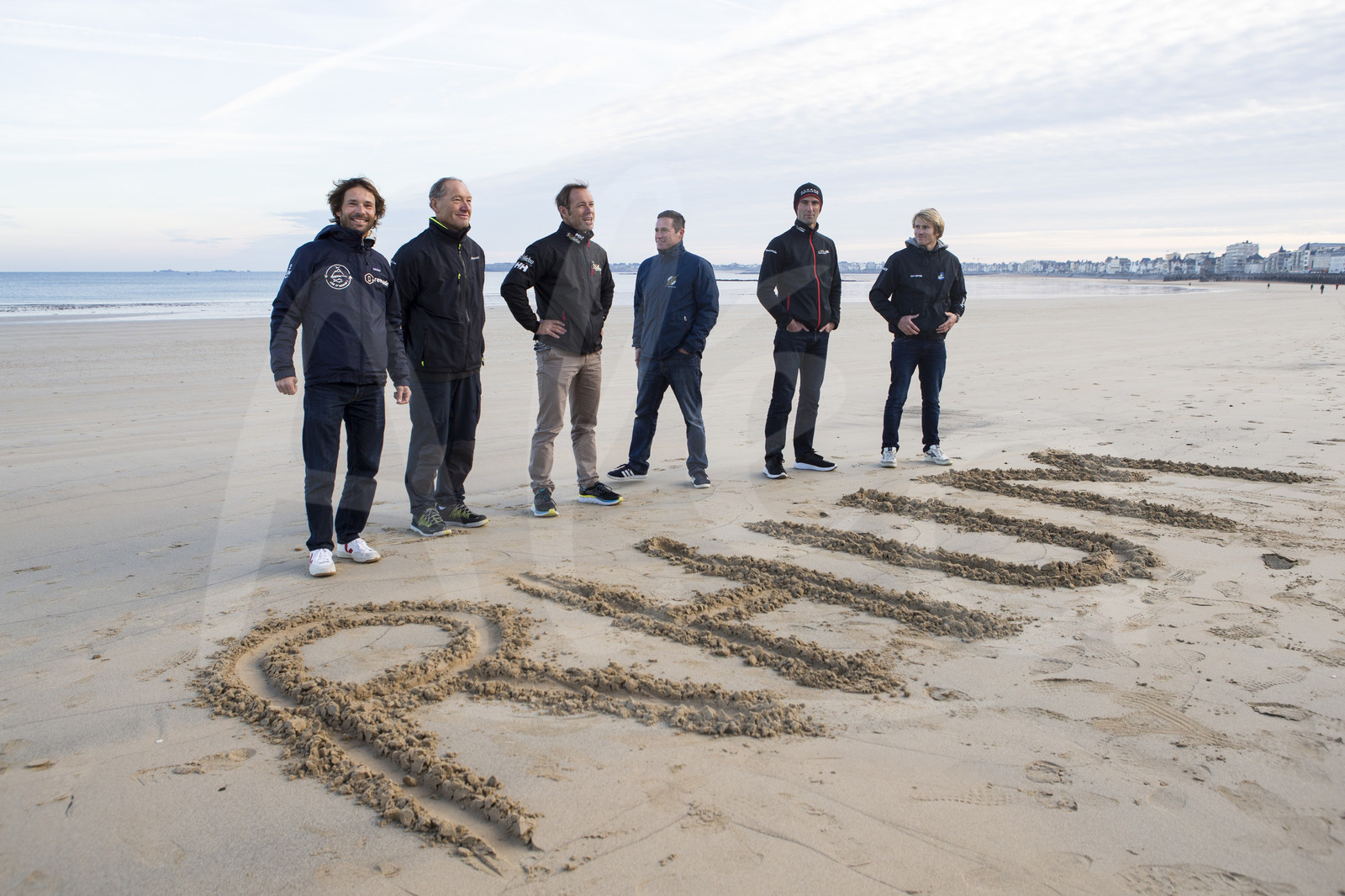 | Description | Group picture of all ultime skippers, Romain Pilliard, Remade Use It Again, Thomas Coville, Sodebo Ultim', Sebastien Josse, Maxi Edmond de Rothschild, Francois Gabart, MACIF, Armel Le Cleac'h, Banque Populaire IX, Francis Joyon, IDEC Sport, on Sillon beach, during the pre-start of the Route du Rhum 2018, on November 3rd, 2018 in St-Malo, north Brittany, France - Photo Jean-Marie Liot / Alea |