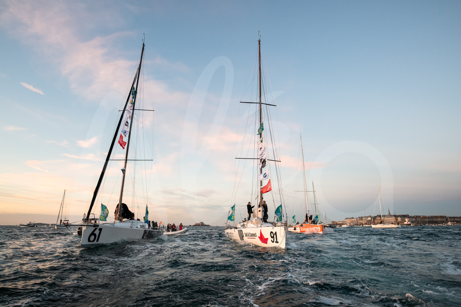 | Description | General view of the class 40 leaving pontoons to pass a lock towards moorings, they will spend the night before the start of the Route du Rhum 2018, on November 3rd, 2018 in St-Malo, north Brittany, France - Photo Jean-Louis Carli / Alea |
