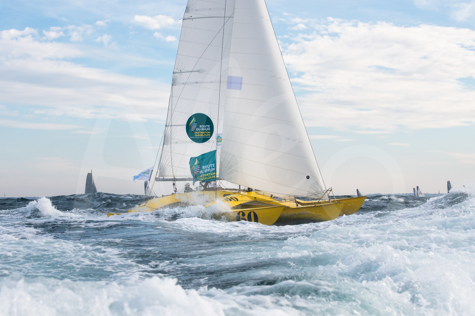 | Description | rhum multi Happy, skipper Loick Peyron, during the start of the Route du Rhum 2018, on November 4th, 2018 in St-Malo, north Brittany, France - Photo Jean-Louis Carli / Alea |