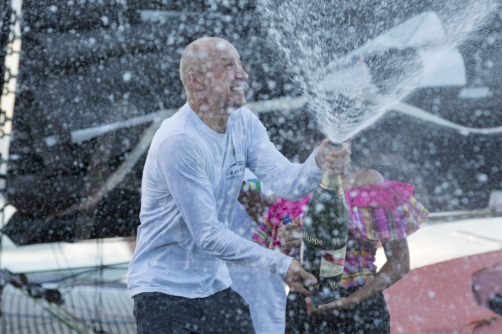 | Description | Category multi 50, celebration with champagne for winner Reaute Chocolat, skipper Armel Tripon, third overall, during arrival of the Route du Rhum 2018, on November 15th, 2018 in Pointe-a-Pitre, Guadeloupe, France - Photo Jean-Marie Liot / Alea. |