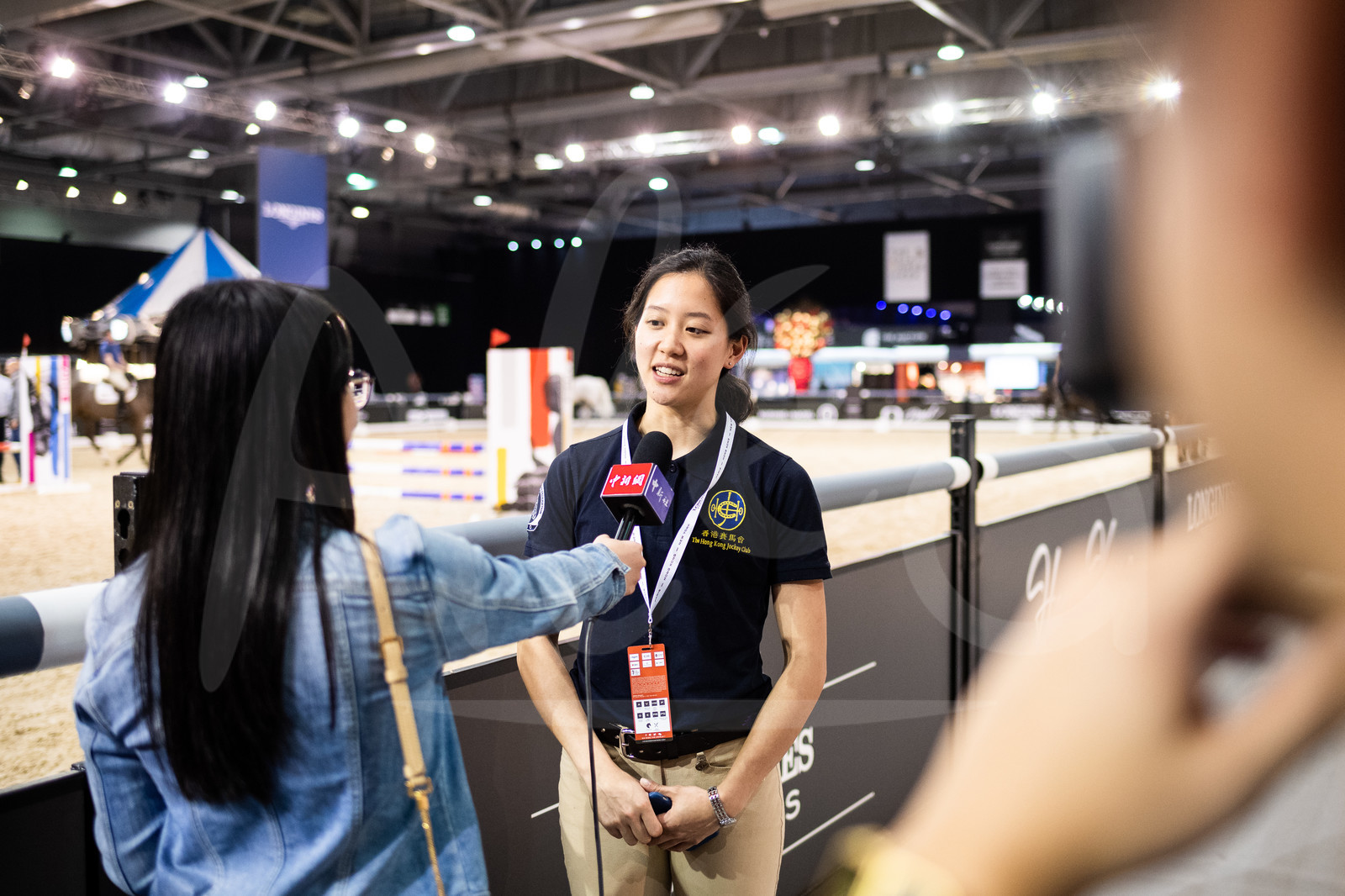 | Description | Hong Kong rider Jacqueline Lai being interviewed by media during the Longines Masters Hong Kong 2019, at Asia World Expo on February 14th, 2019 - Photo Jean-Louis Carli / Alea / EEM |