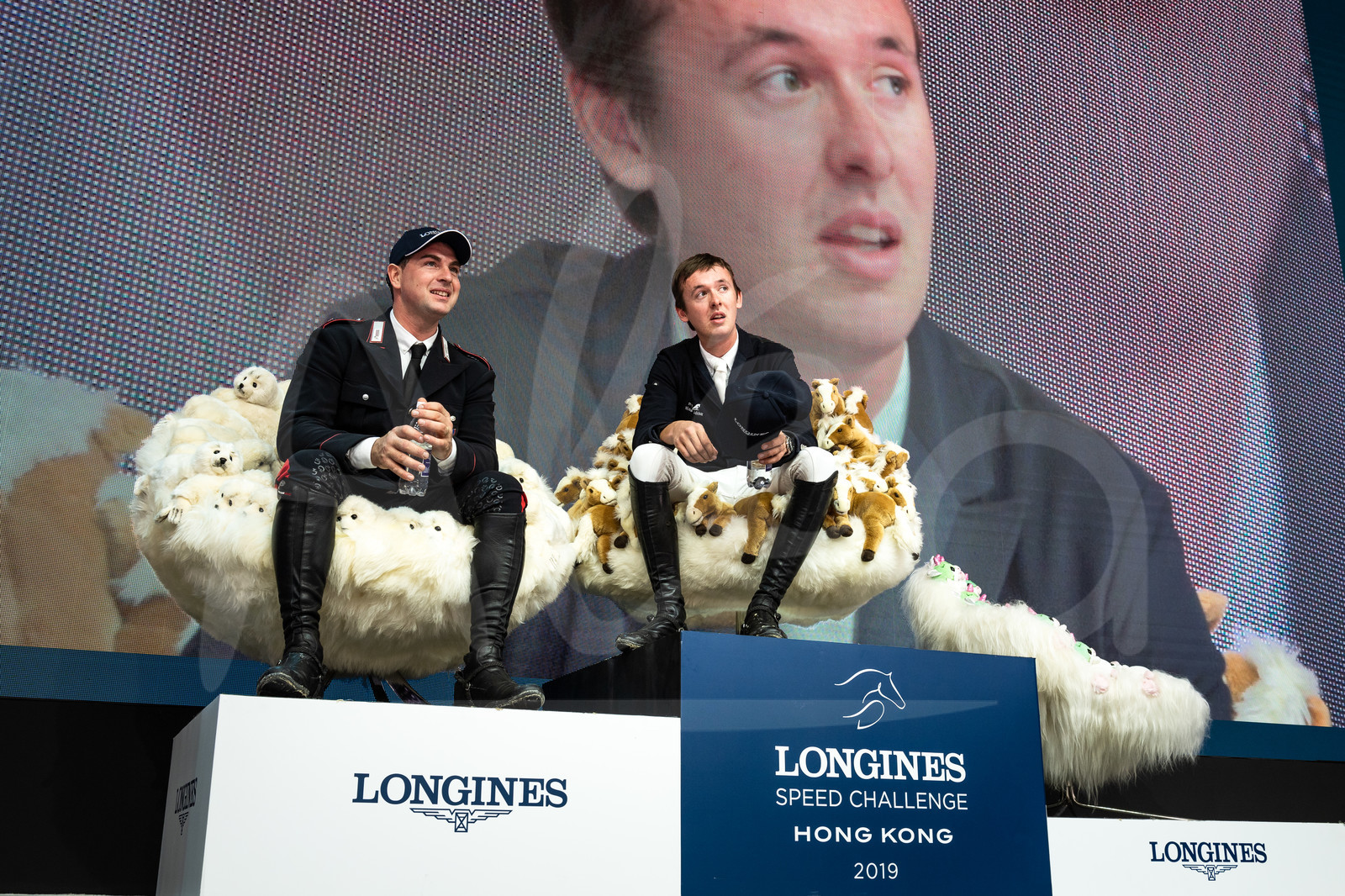 | Description | provisional podium for GAUDIANO, Emanuele / ITA, ALLEN, Bertram / IRL during The Longines Speed Challenge, at the Longines Masters Hong Kong 2019, Asia World Expo, on February 16th, 2019 - Photo Jean-Louis Carli / Alea / EEM |