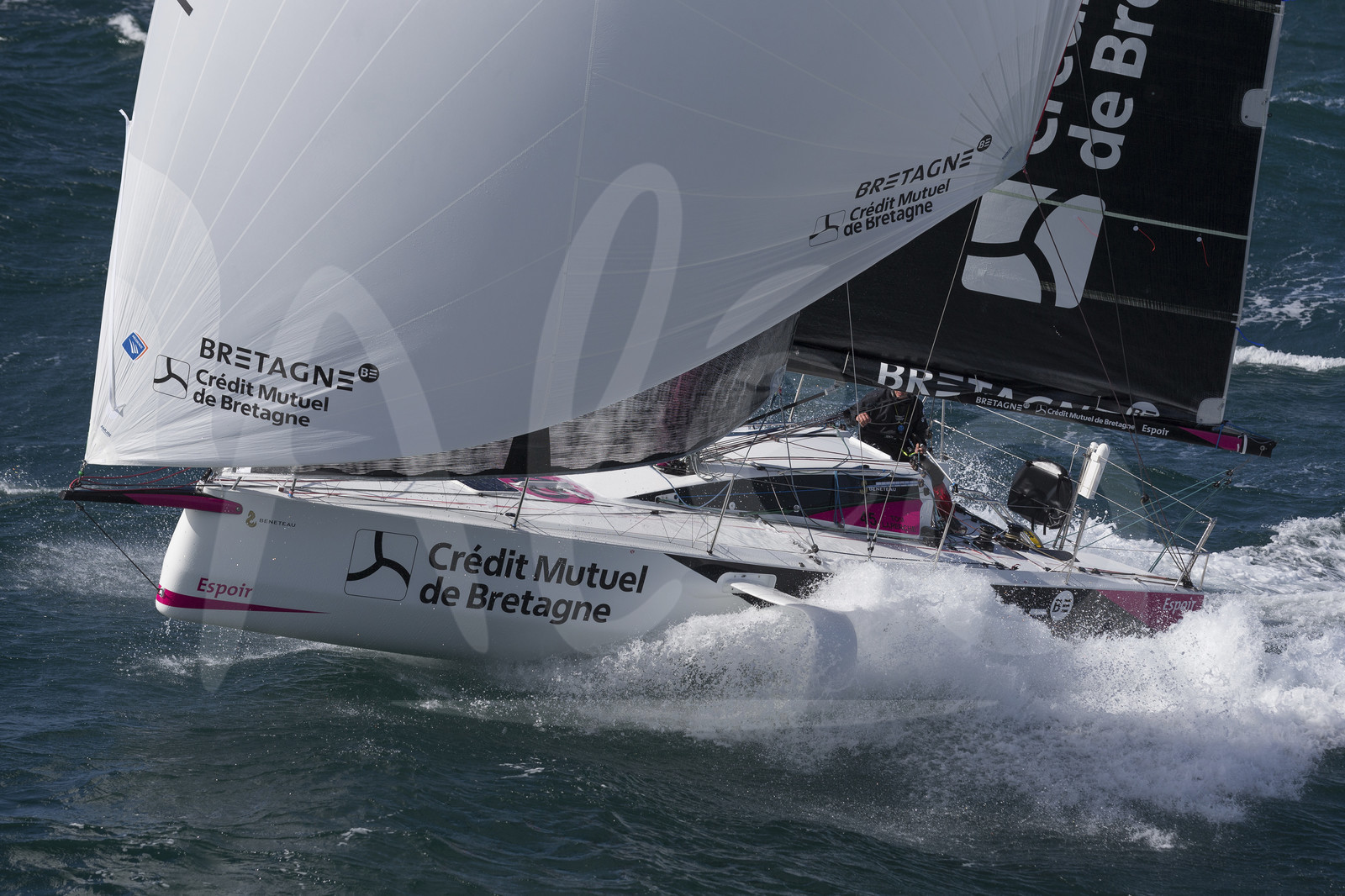 | Description | Figaro 3 Bretagne CMB, skipper Espoir Tom Laperche with skipper Performance Loïs Berrehar, training off les Iles Glenan, on March 10th, 2019 - Photo Jean-Marie Liot / Alea. |