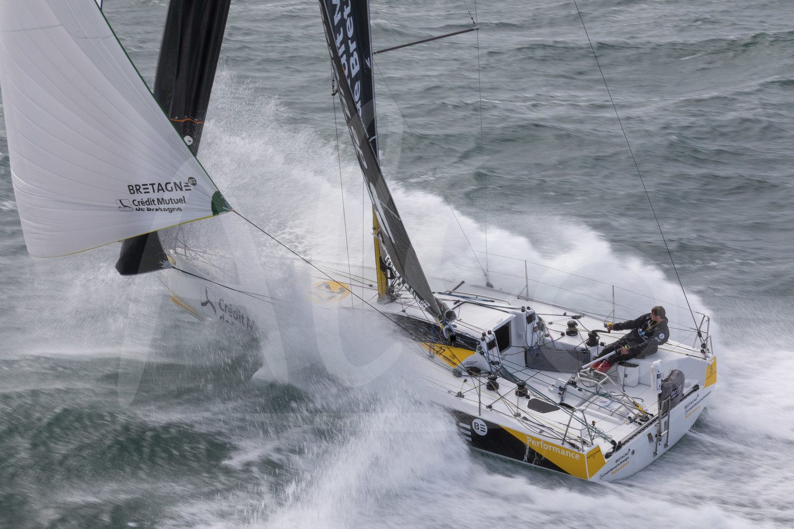 | Description | Figaro 3 Bretagne CMB, skipper Espoir Tom Laperche with skipper Performance Loïs Berrehar, training off les Iles Glenan, on March 10th, 2019 - Photo Jean-Marie Liot / Alea. |