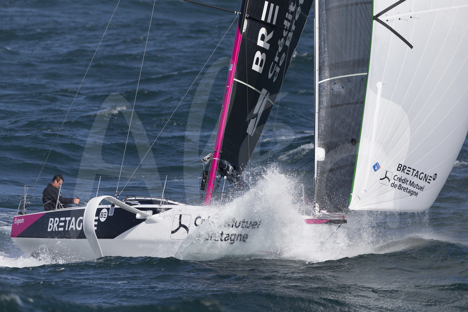 | Description | Figaro 3 Bretagne CMB, skipper Espoir Tom Laperche with skipper Performance Loïs Berrehar, training off les Iles Glenan, on March 10th, 2019 - Photo Jean-Marie Liot / Alea. |