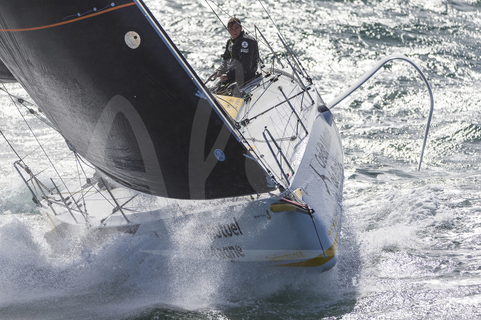 | Description | Figaro 3 Bretagne CMB, skipper Espoir Tom Laperche with skipper Performance Loïs Berrehar, training off les Iles Glenan, on March 10th, 2019 - Photo Jean-Marie Liot / Alea. |