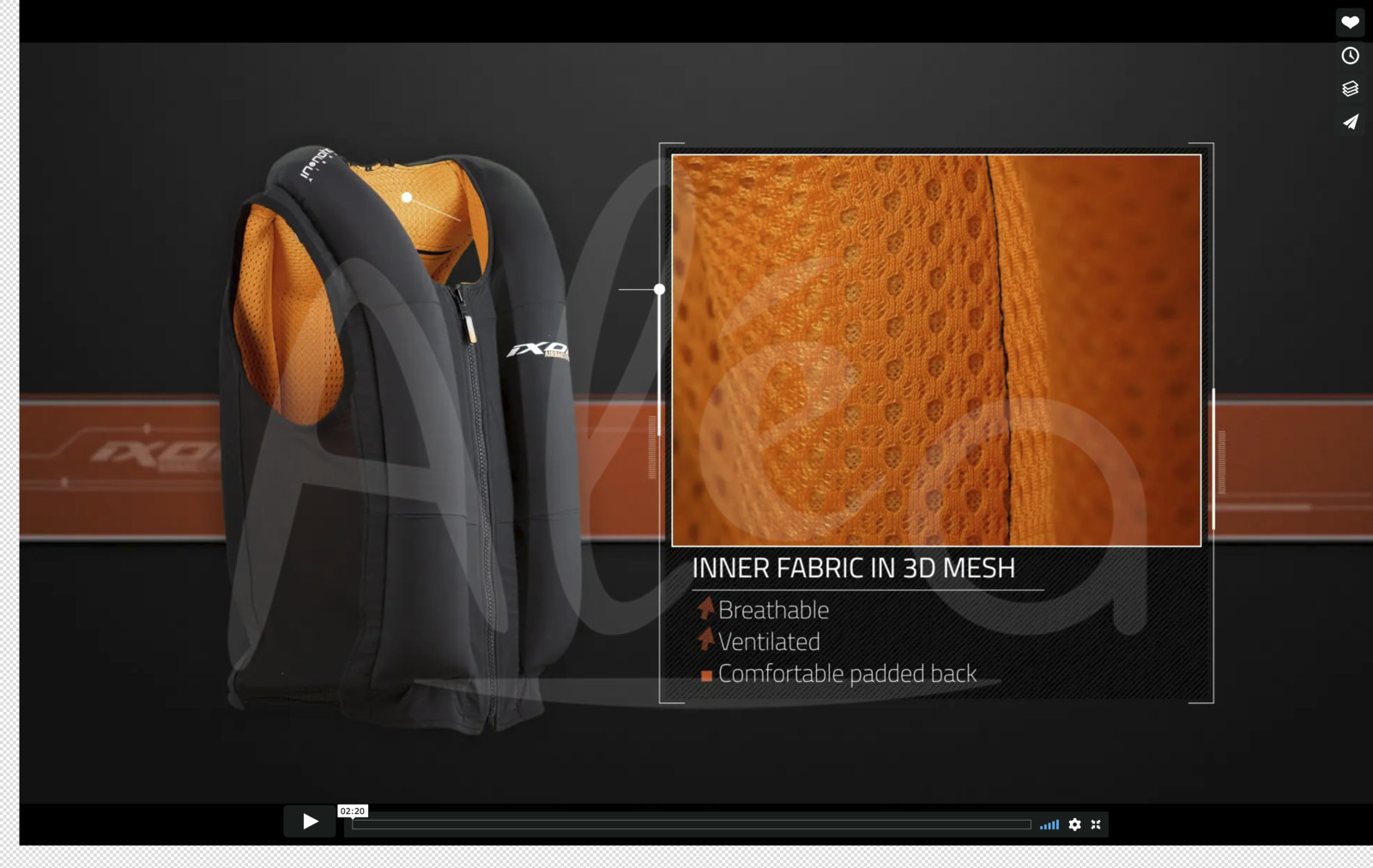 | Description | Réalisation du film de lancement du 1er Airbag électronique intelligent d'IXON, portable sous tous les blousons..L'équipe a géré la conception, la production, le tournage, la modélisation et l'animation 3D, le Motion Design et l'éditing..© Alex Chailan & Frank Donzelli..Lien vers la vidéo : https://vimeo.com/294092627 |