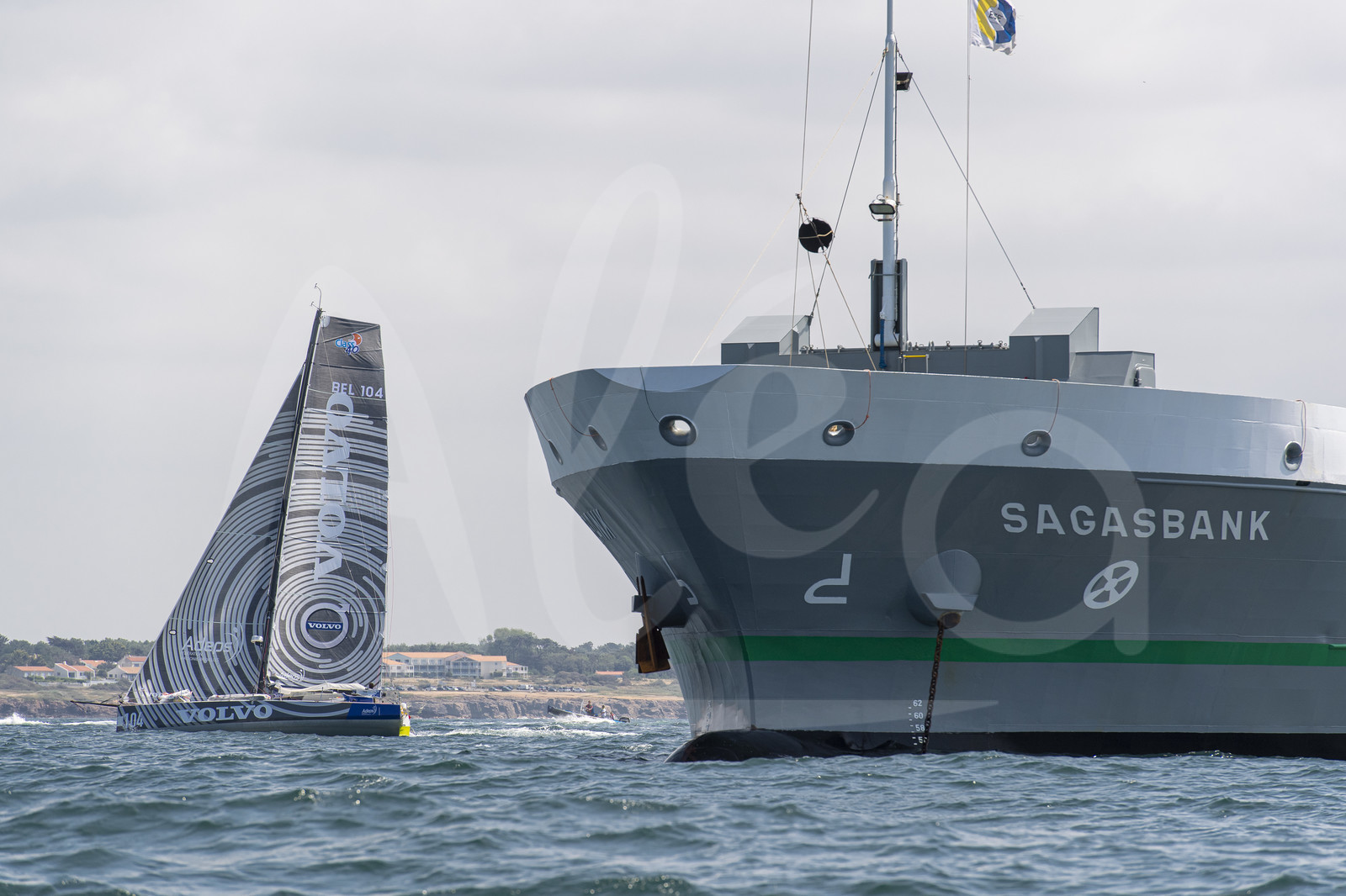 | Description | LES SABLES D'OLONNE - JUNE 30, 2019 : Belgian skipper Jonas Gerckens, on Volvo, takes the start of the Class 40 sailing race in duo, Les Sables - Horta - Les Sables on June 30, 2019, off Les Sables d'Olonne, France. (Photo by Olivier Blanchet/Alea) |