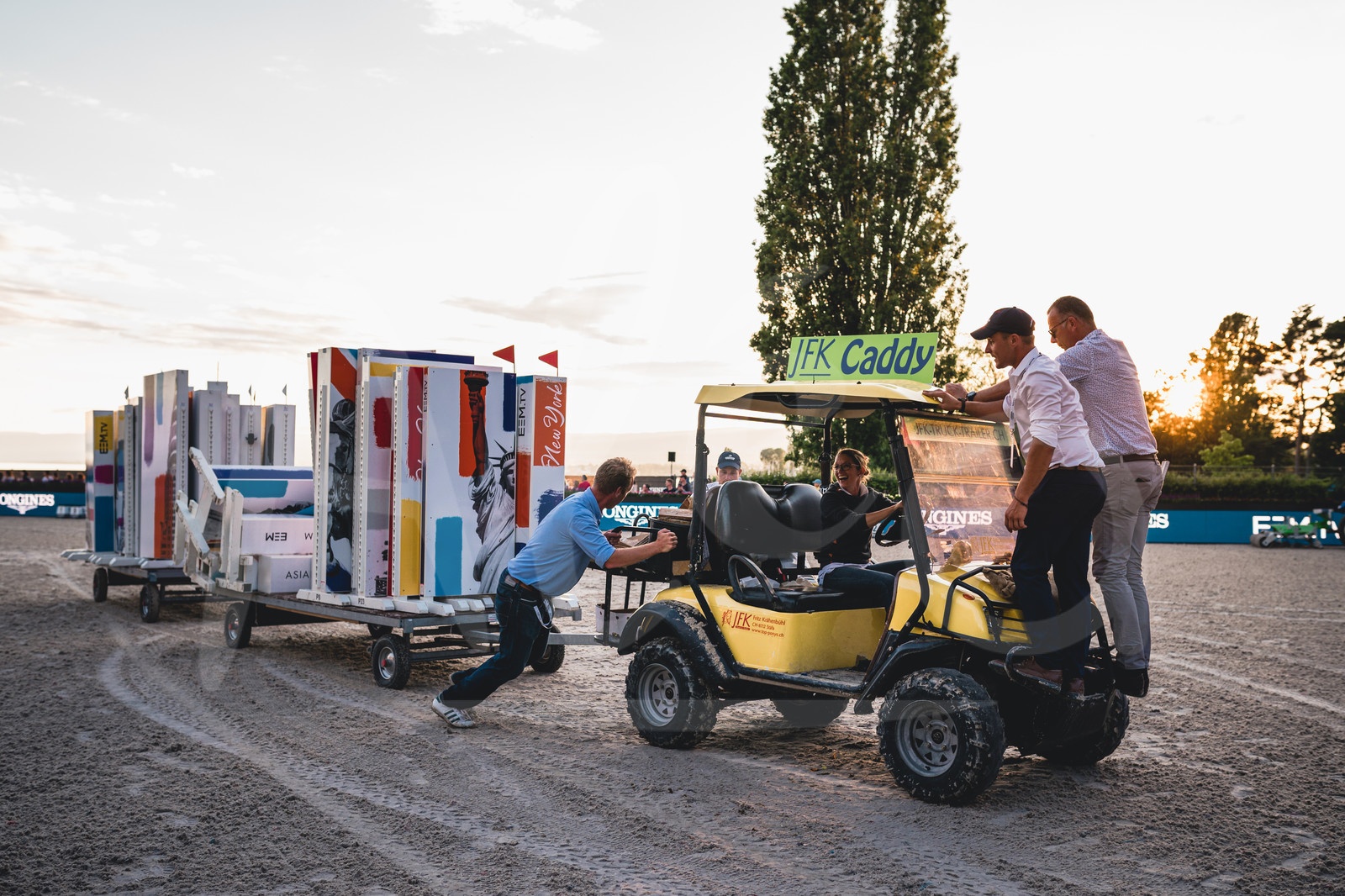 | Description | LAUSANNE, SWITZERLAND - JUNE 22, 2019 : Organisation team remove fences from the arena after the Longines Speed Challenge at the Longines Masters Lausanne, on June 22, 2019 in Lausanne, Switzerland. (Photo by Alexis Anice/ALeA/EEM) |