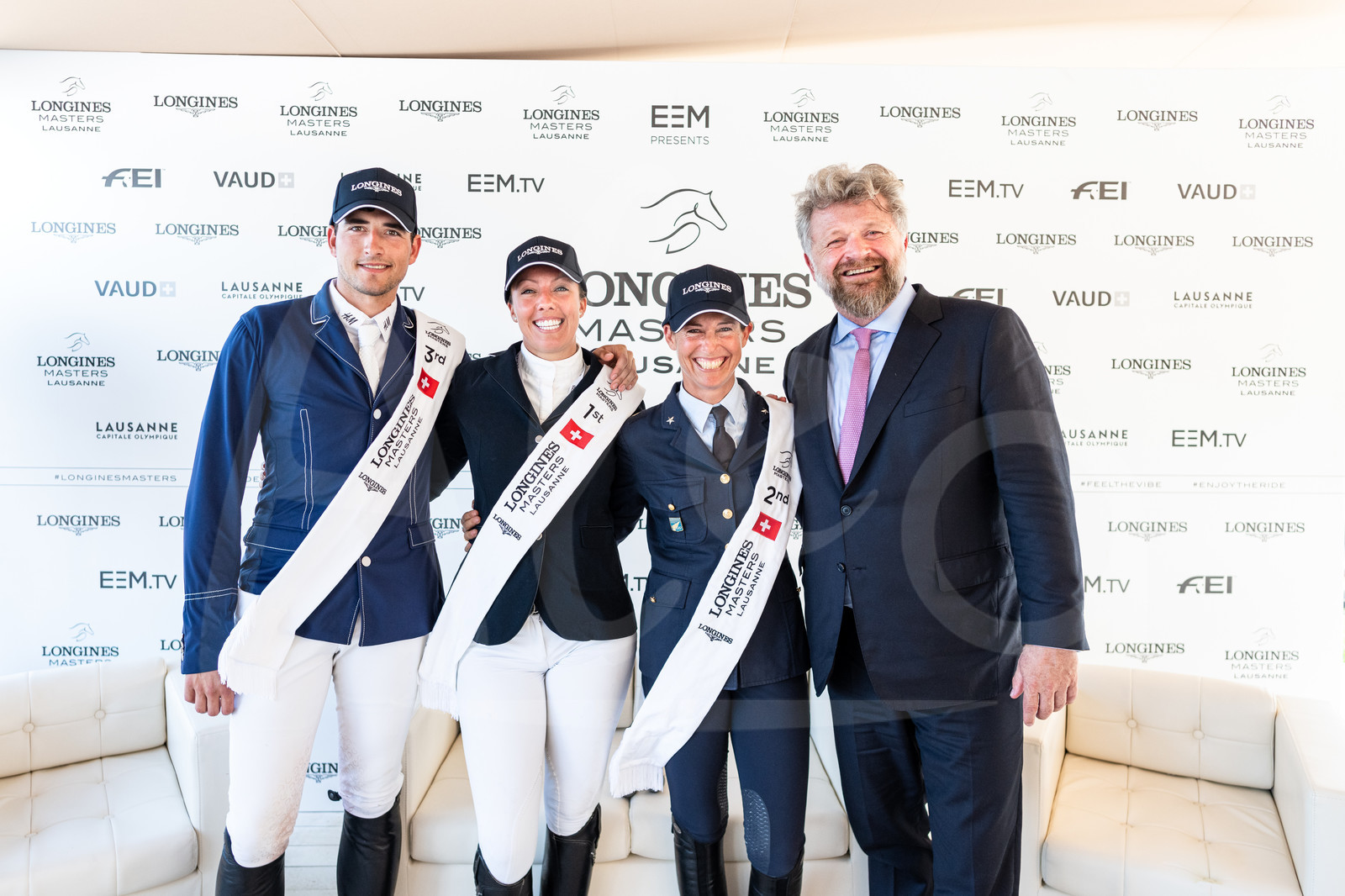 | Description | LAUSANNE, SWITZERLAND - JUNE 23, 2019 : From left to right : Belgian rider Nicola Philippaerts, 3rd place, German rider Gudrun Patteet, winner, Italian rider Giulia Martinengo, 2nd place, and Christophe Ameeuw (PDG EEM) attend the press conference of the Longines Grand Prix of Lausanne during the Longines Masters Lausanne, on June 23, 2019 in Lausanne, Switzerland. (Photo by Jean-Louis Carli/ALeA/EEM) |