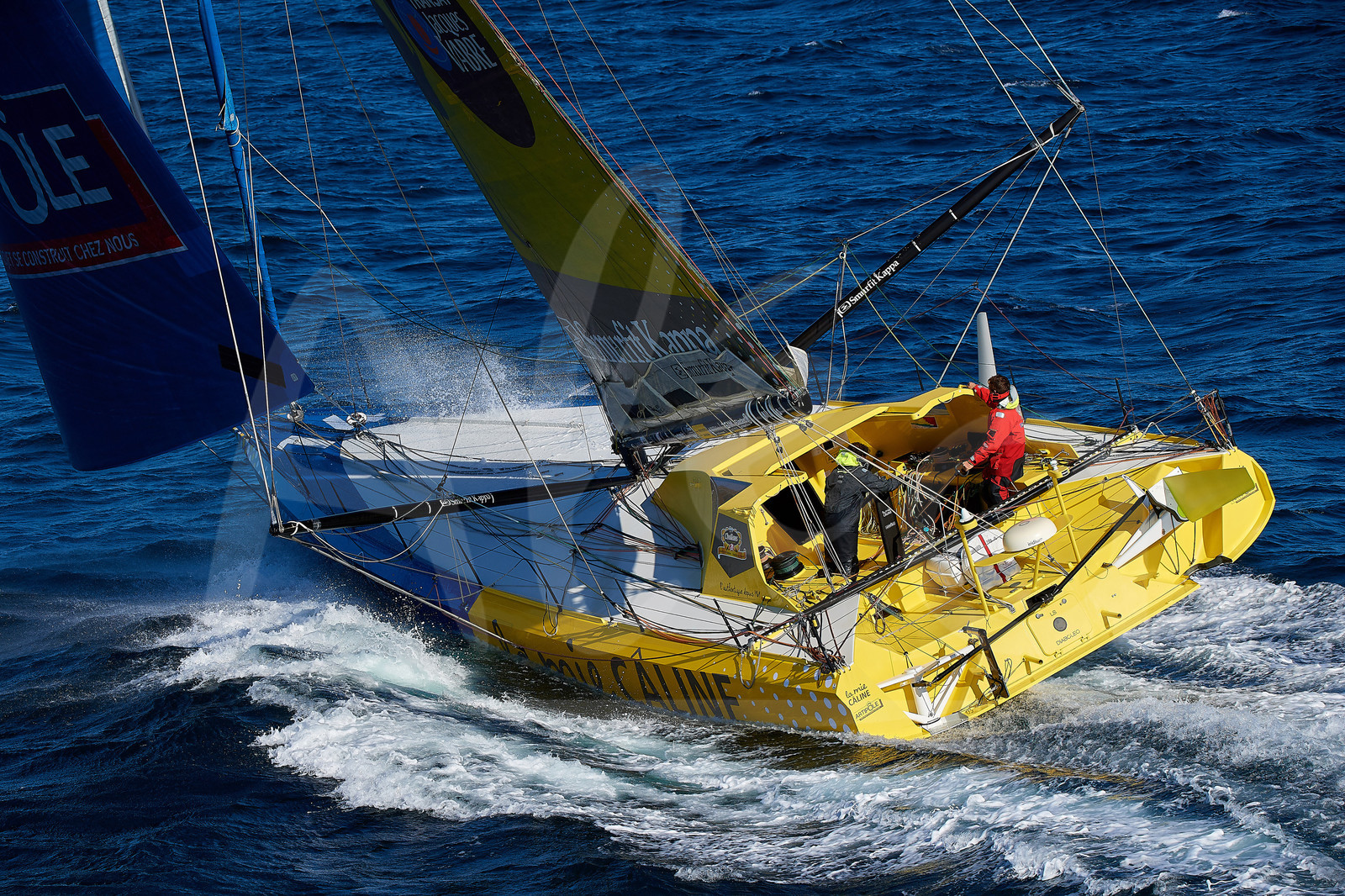 | Description | OFF LORIENT, FRANCE - SEPTEMBER 19: French skippers Arnaud Boissieres and Xavier Macaire are training on the Imoca La Mie Caline - Artipole, prior to the Transat Jacques Vabre, sailing race in duo from Le Havre to Bahia, on September 19, 2019 off Lorient, France. (Photo by Yvan Zedda/Alea) |