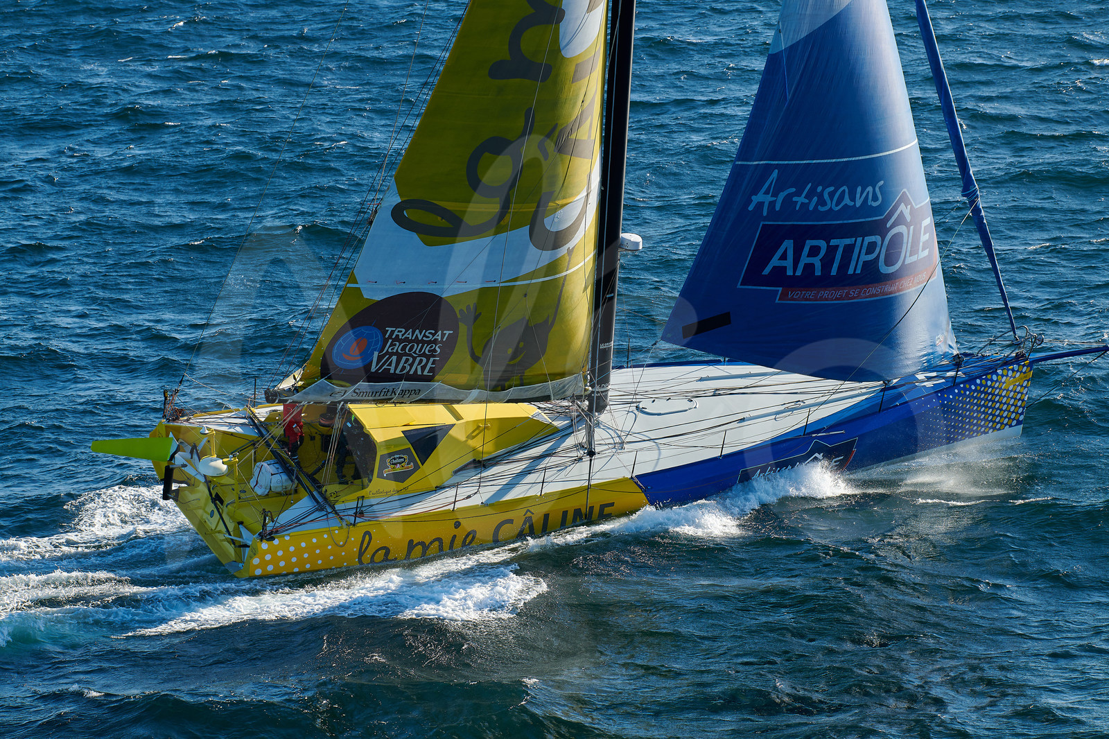 | Description | OFF LORIENT, FRANCE - SEPTEMBER 19: French skippers Arnaud Boissieres and Xavier Macaire are training on the Imoca La Mie Caline - Artipole, prior to the Transat Jacques Vabre, sailing race in duo from Le Havre to Bahia, on September 19, 2019 off Lorient, France. (Photo by Yvan Zedda/Alea) |