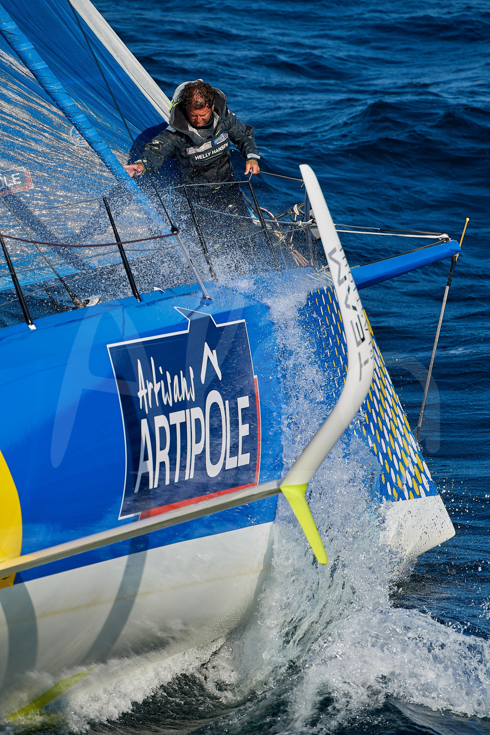 | Description | OFF LORIENT, FRANCE - SEPTEMBER 19: French skippers Arnaud Boissieres and Xavier Macaire are training on the Imoca La Mie Caline - Artipole, prior to the Transat Jacques Vabre, sailing race in duo from Le Havre to Bahia, on September 19, 2019 off Lorient, France. (Photo by Yvan Zedda/Alea) |