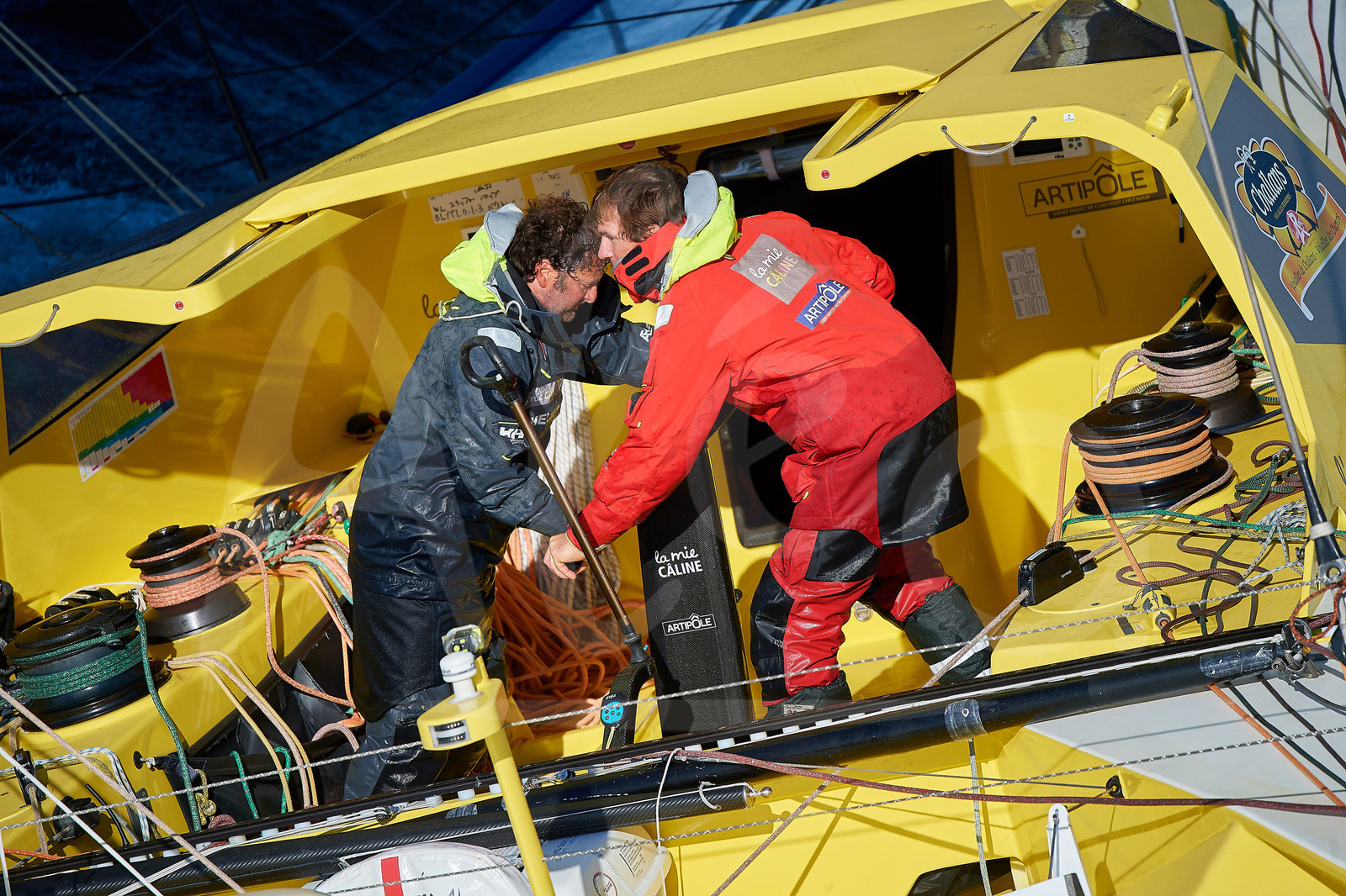 | Description | OFF LORIENT, FRANCE - SEPTEMBER 19: French skippers Arnaud Boissieres and Xavier Macaire are training on the Imoca La Mie Caline - Artipole, prior to the Transat Jacques Vabre, sailing race in duo from Le Havre to Bahia, on September 19, 2019 off Lorient, France. (Photo by Yvan Zedda/Alea) |