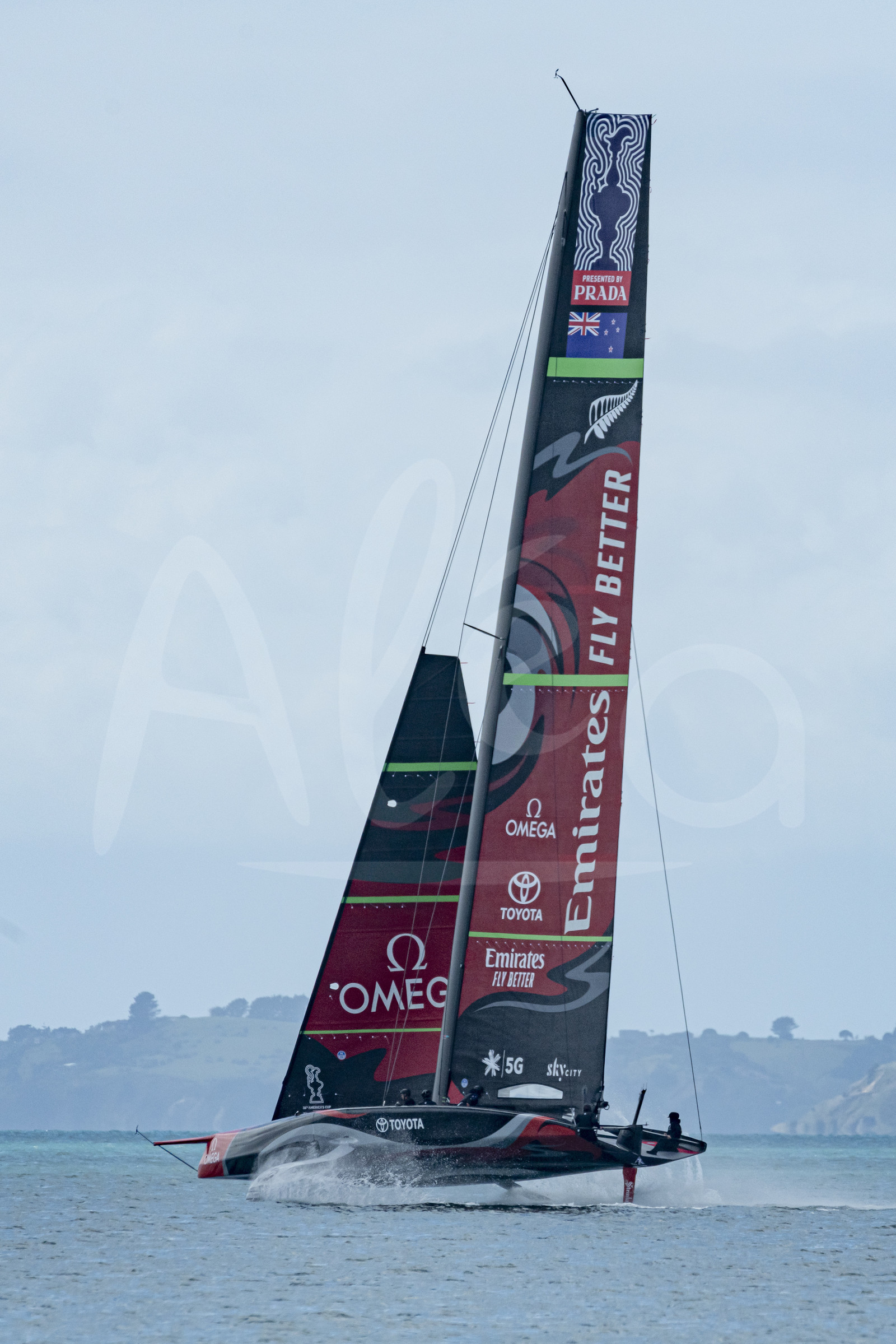 | Description | AUCKLAND, NEW ZEALAND - OCTOBER 4: Emirates Team New Zealand is testing their AC75 foiling monohull "The Aihe"on the Hauraki Gulf off Auckland, on October 4, 2019. ETNZ is training for the America's Cup 2021. (Photo by Chris Cameron/Alea) |
