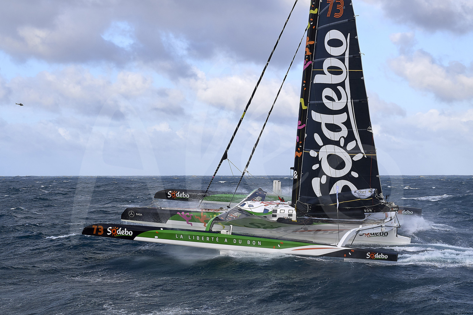 | Description | BREST, FRANCE - NOVEMBER 05: Sodebo Ultim 3 co-skipper Jean-Luc Nelias is waving at photographer while taking the start of the Brest Atlantiques duo sailing race on November 5, 2019 in Brest, France. Brest Atlantiques is reserved to Class Ultim 32/23, from Brest to Brest, via waypoints off Rio de Janeiro and Cape Town, without any stop. (Photo by Yvan Zedda/Alea) |