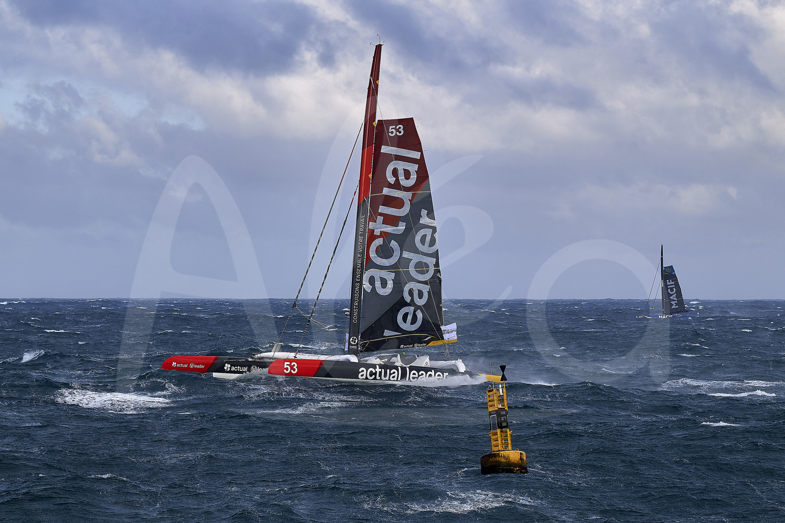 | Description | BREST, FRANCE - NOVEMBER 05: Actual Leader and Trimaran MACIF are crossing the startline of the Brest Atlantiques duo sailing race on November 5, 2019 in Brest, France. Brest Atlantiques is reserved to Class Ultim 32/23, from Brest to Brest, via waypoints off Rio de Janeiro and Cape Town, without any stop. (Photo by Yvan Zedda/Alea) |