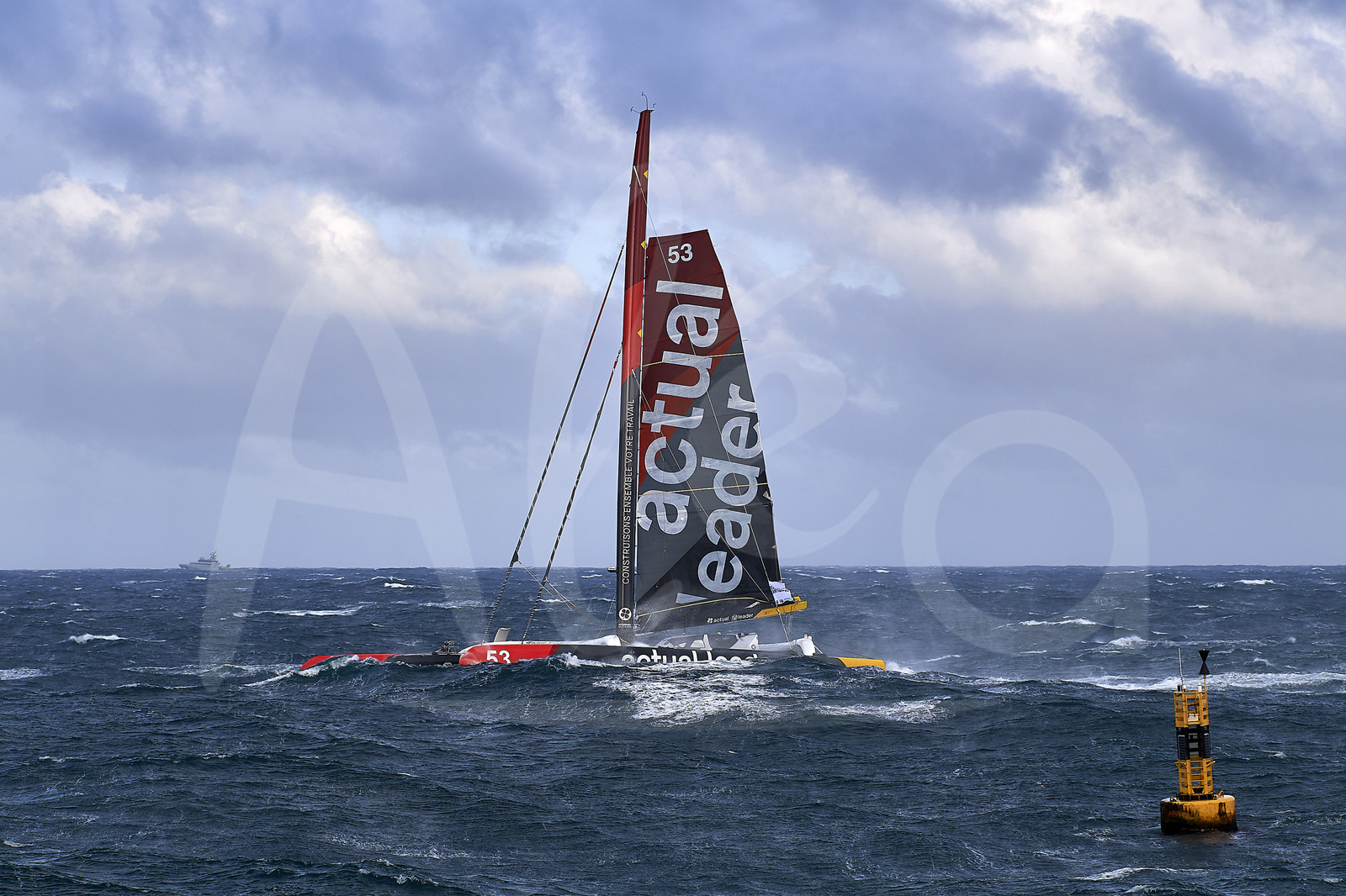 | Description | BREST, FRANCE - NOVEMBER 05: Actual Leader is crossing the startline of the Brest Atlantiques duo sailing race on November 5, 2019 in Brest, France. Brest Atlantiques is reserved to Class Ultim 32/23, from Brest to Brest, via waypoints off Rio de Janeiro and Cape Town, without any stop. (Photo by Yvan Zedda/Alea) |