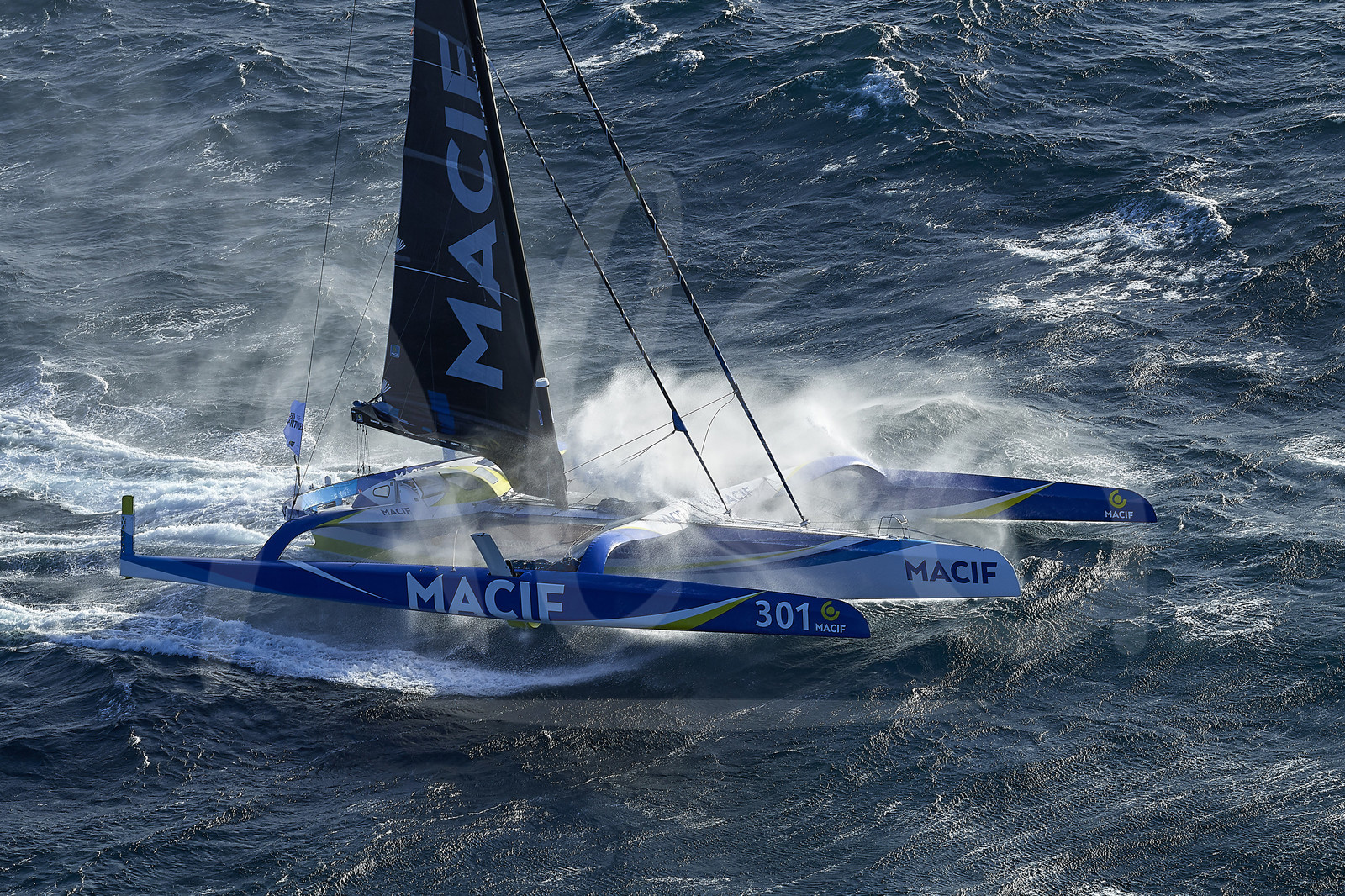 | Description | BREST, FRANCE - NOVEMBER 05: Trimaran MACIF is taking the start of the Brest Atlantiques duo sailing race on November 5, 2019 in Brest, France. Brest Atlantiques is reserved to Class Ultim 32/23, from Brest to Brest, via waypoints off Rio de Janeiro and Cape Town, without any stop. (Photo by Yvan Zedda/Alea) |