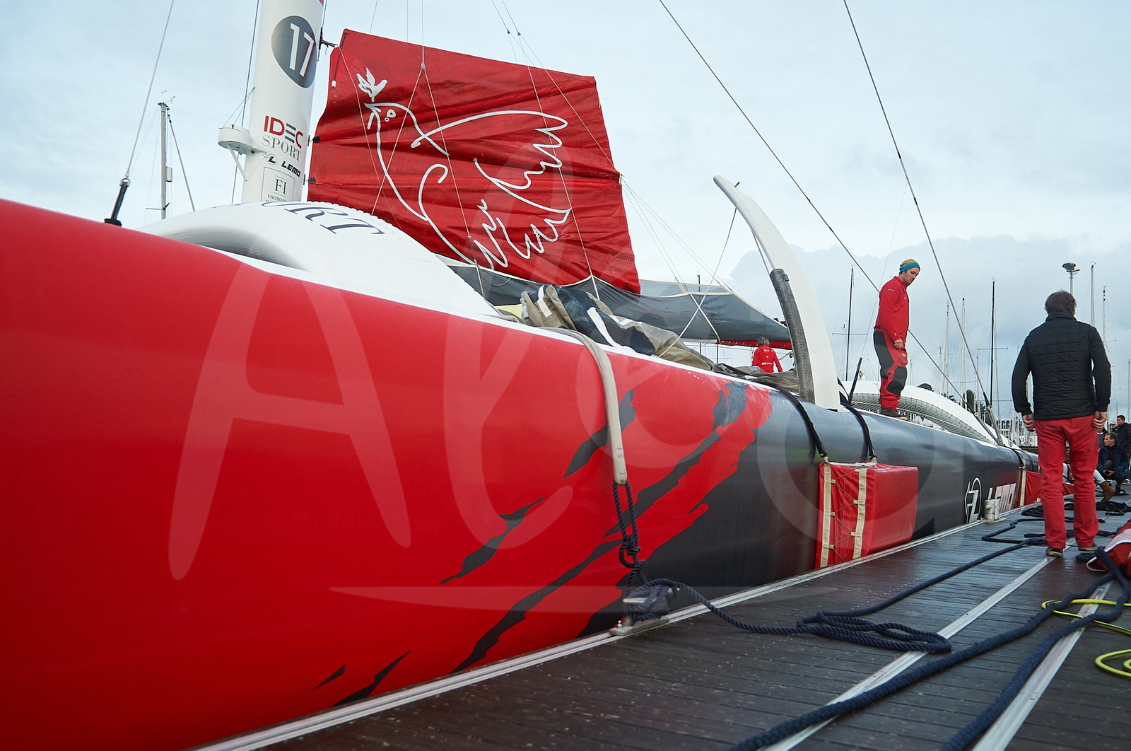 | Description | LA TRINITE SUR MER, FRANCE - OCTOBER 19: French skipper Francis Joyon begins his Asian Tour with "La Mauricienne" record breaking attempt from Port Louis, South Brittany, to Port Louis, Mauritius, on October 19, 2019, in La Trinite sur Mer, France. (Photo by Martin Coudriet/Alea) |