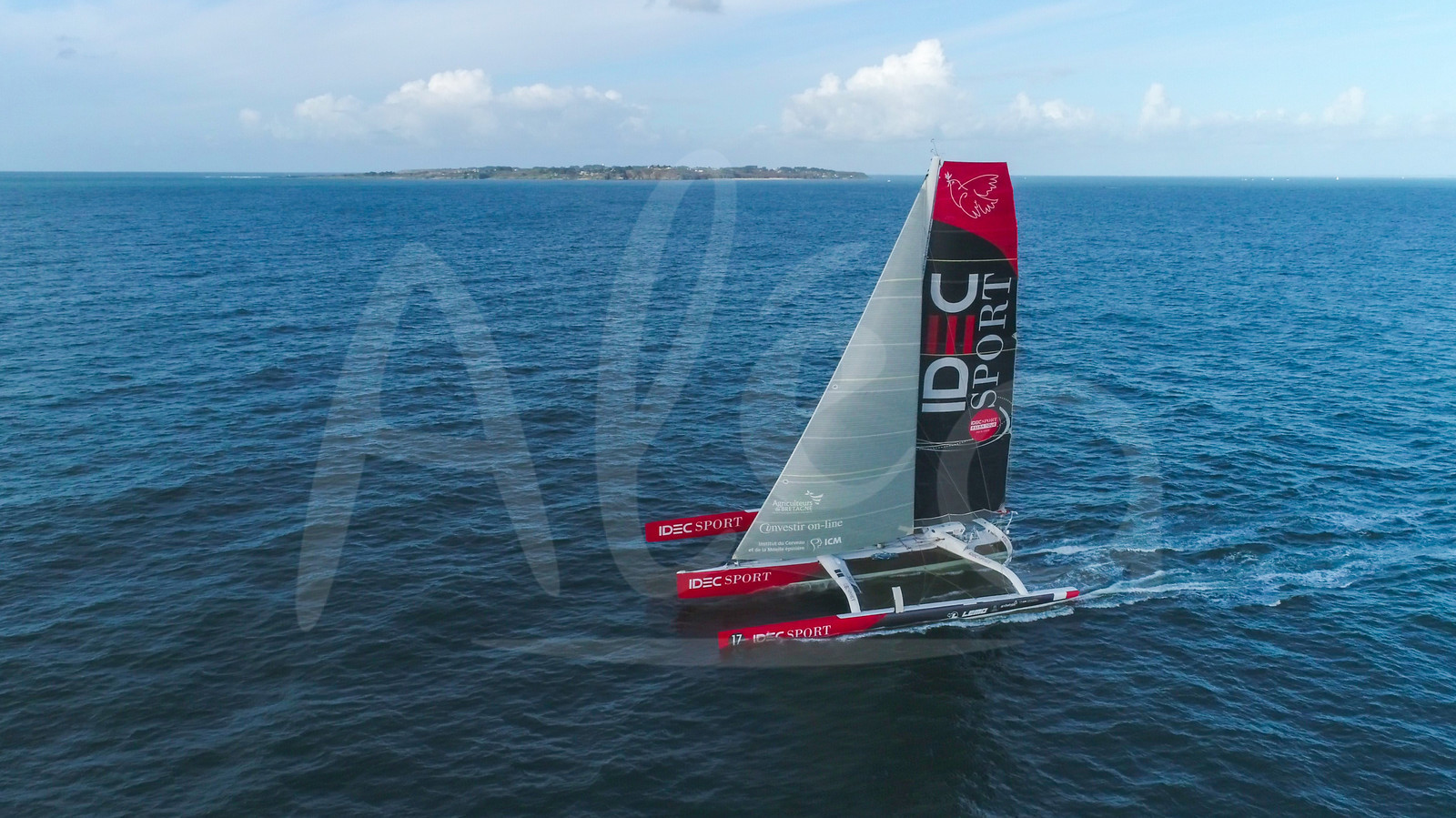 | Description | GROIX, FRANCE - OCTOBER 19: French skipper Francis Joyon begins his Asian Tour with "La Mauricienne" record breaking attempt from Port Louis, South Brittany, to Port Louis, Mauritius, on October 19, 2019, in La Trinite sur Mer, France. (Photo by Jeremie Eloy/Wanai/Alea) |