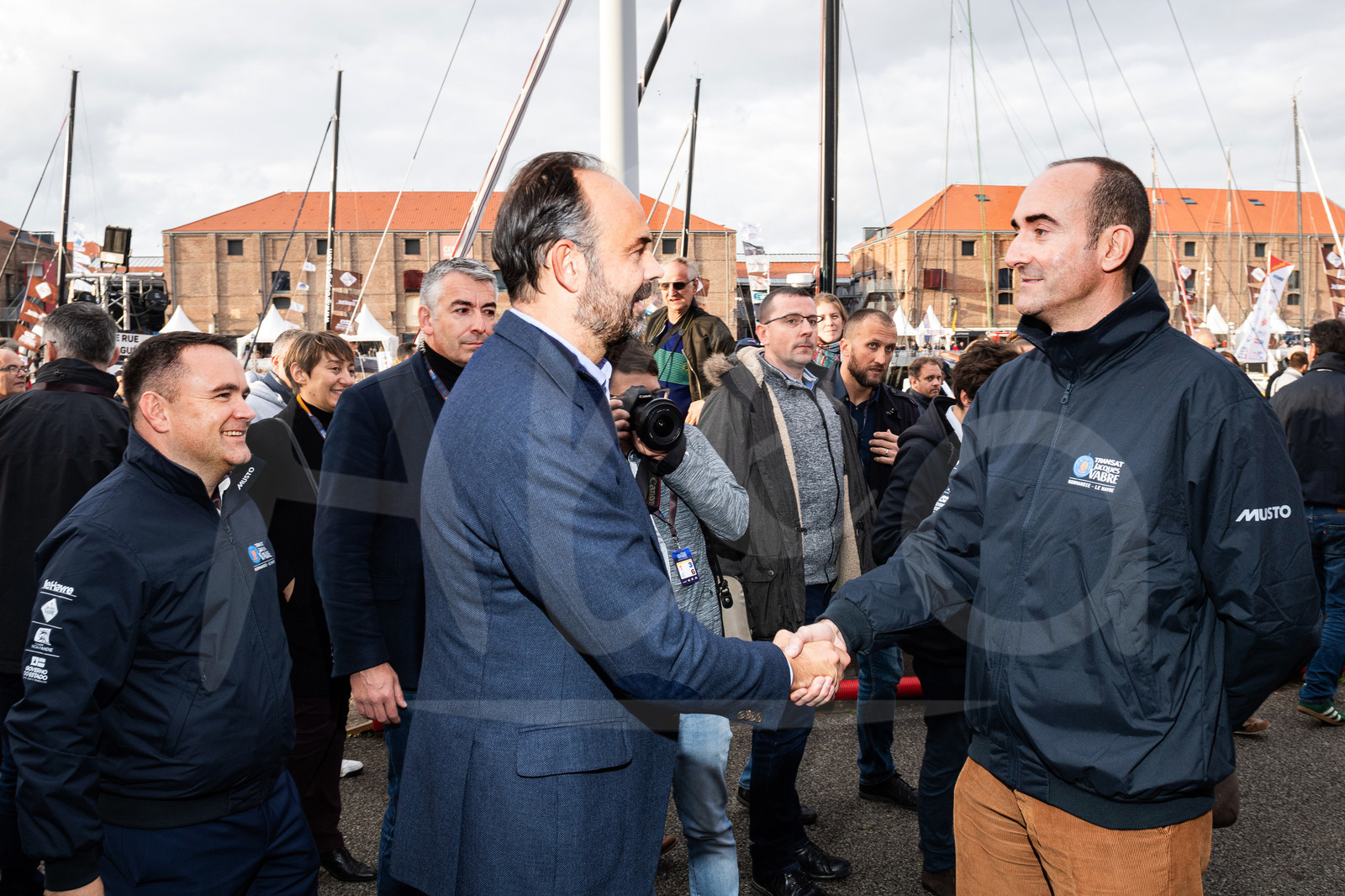 | Description | LE HAVRE, FRANCE - OCTOBER 25: French prime minister Edouard Philippe is meeting Juan Amat, President of JDE, during pre-start of the Transat Jacques Vabre 2019, duo sailing race from Le Havre, France, to Salvador de Bahia, Brazil, on October 25, 2019 in Le Havre, France. (Photo by Jean-Louis Carli/Alea) |