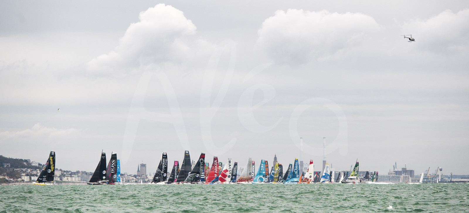 | Description | LE HAVRE, FRANCE - OCTOBER 27: Boats compete during start of the Transat Jacques Vabre 2019, duo sailing race from Le Havre, France, to Salvador de Bahia, Brazil, on October 27, 2019 in Le Havre, France. (Photo by Vincent Curutchet/Alea) |