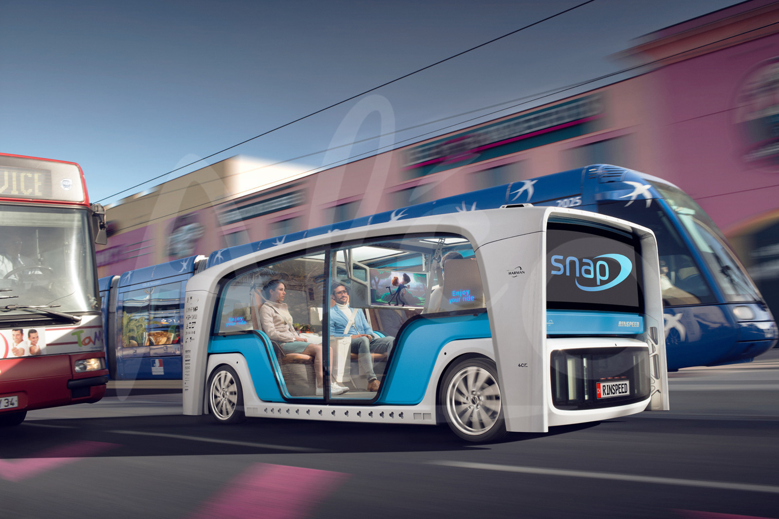 Description | Photo accompagnant les vidéos réalisées pour RINSPEED, avant leur présentation de solutions d'avenir, connectées, autonomes et polyvalentes, au salon de Las Vegas.Photo Dingo |