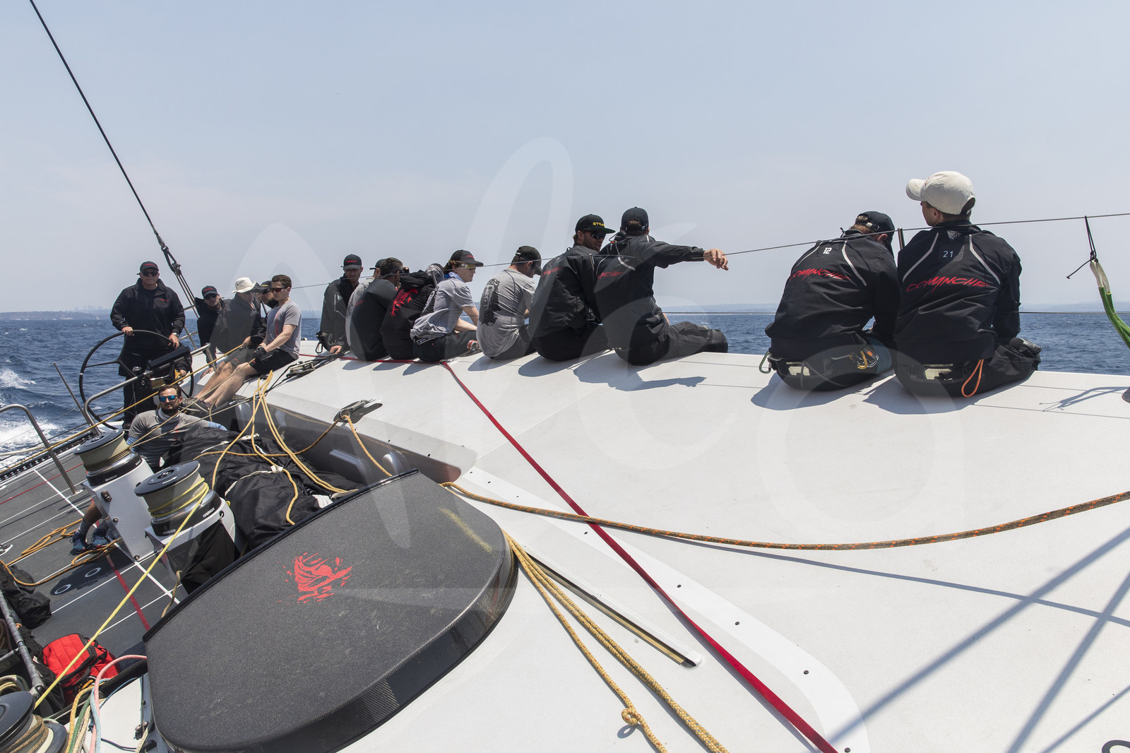 Description | SYDNEY, AUSTRALIA - DECEMBER 12: The crew is training onboard the super maxi yacht Comanche owned by Jim and Samantha Cooney, prior to the Rolex Sydney to Hobart yacht race, on December 12, 2019, in Sydney, Australia. (Photo by Andrea Francolini/Alea) |
