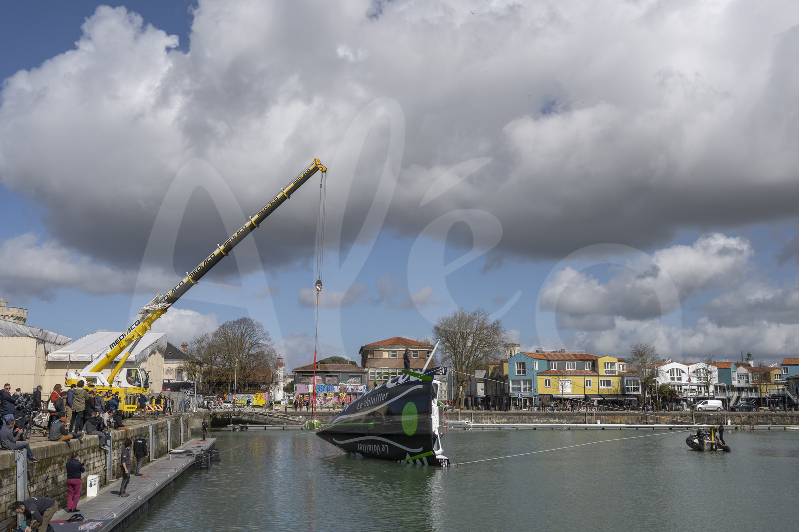 Description | LA ROCHELLE, FRANCE - MARCH 13: The Imoca boat Maitre Coq, skipper Yannick Bestaven, is having a straightening test powered by a crane before her launching, on March 13, 2020, in La Rochelle, France. (Photo by Olivier Blanchet/Alea) |