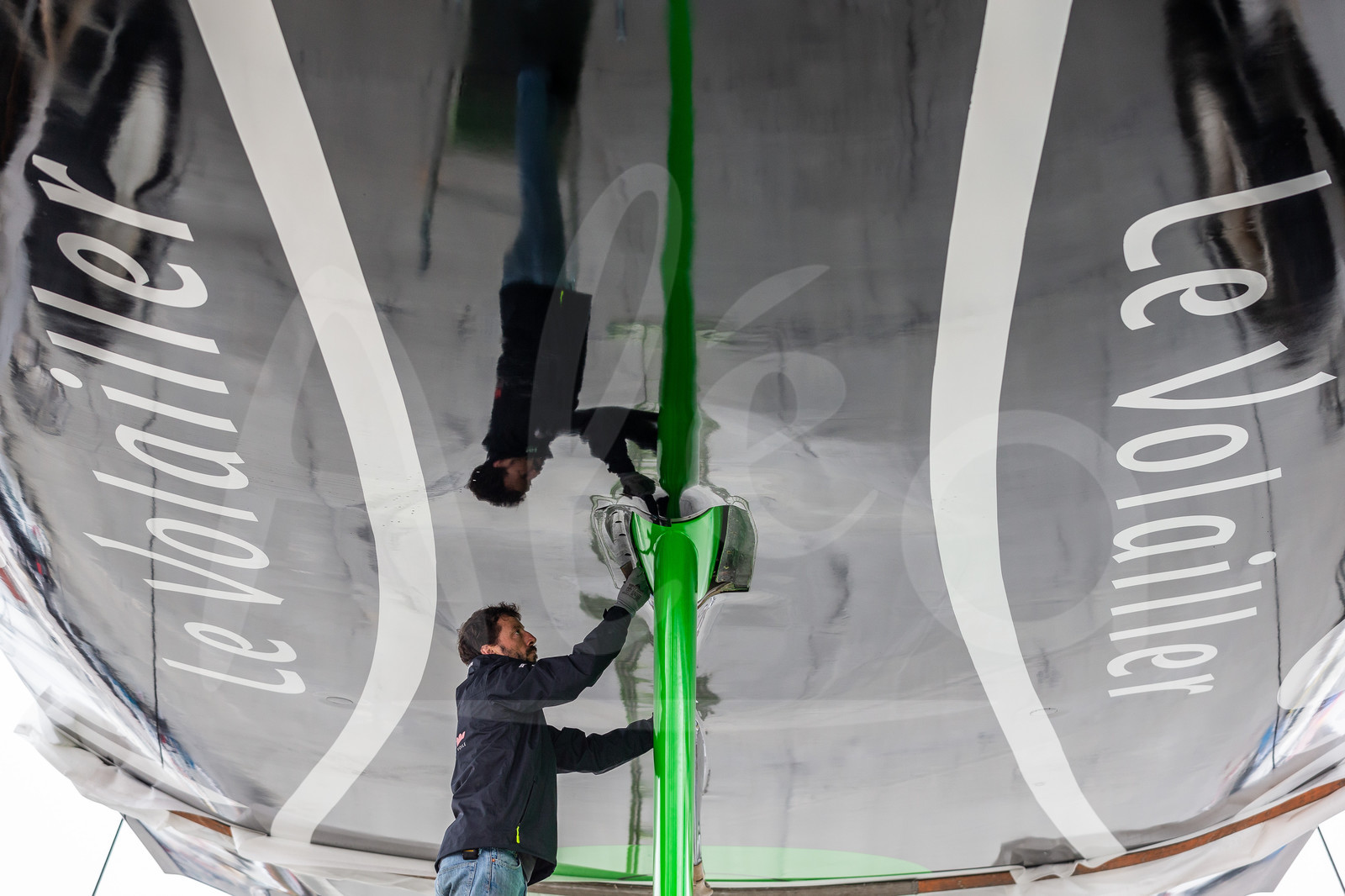 Description | LA ROCHELLE, FRANCE - MARCH 11: The Imoca boat Maitre Coq is being prepared by skipper Yannick Bestaven and his crew before her launching, on March 11, 2020, in La Rochelle, France. (Photo by Jean-Marie Liot/Alea) |
