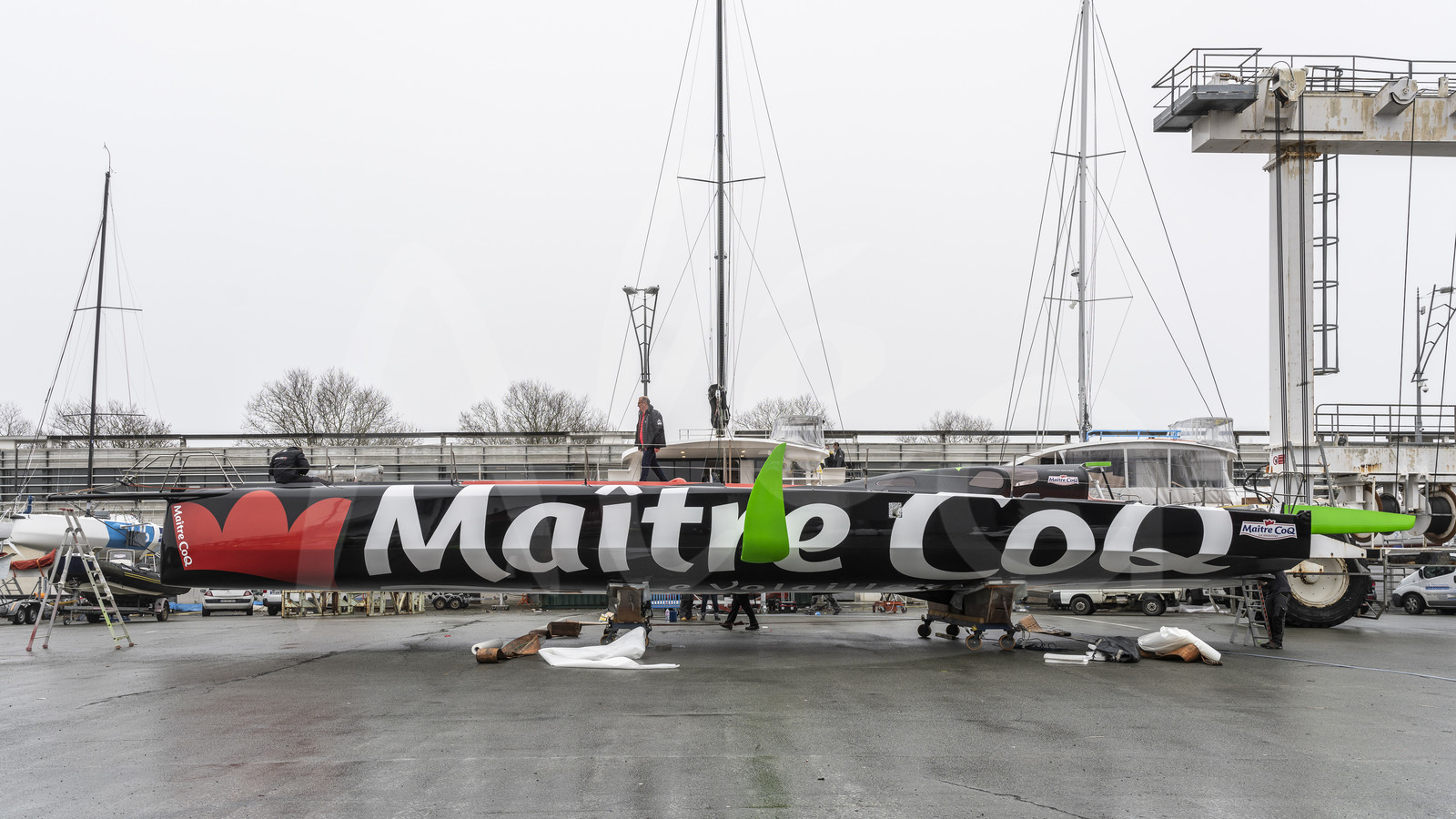 Description | LA ROCHELLE, FRANCE - MARCH 11: The Imoca boat Maitre Coq is being prepared by skipper Yannick Bestaven and his crew before her launching, on March 11, 2020, in La Rochelle, France. (Photo by Olivier Blanchet/Alea) |