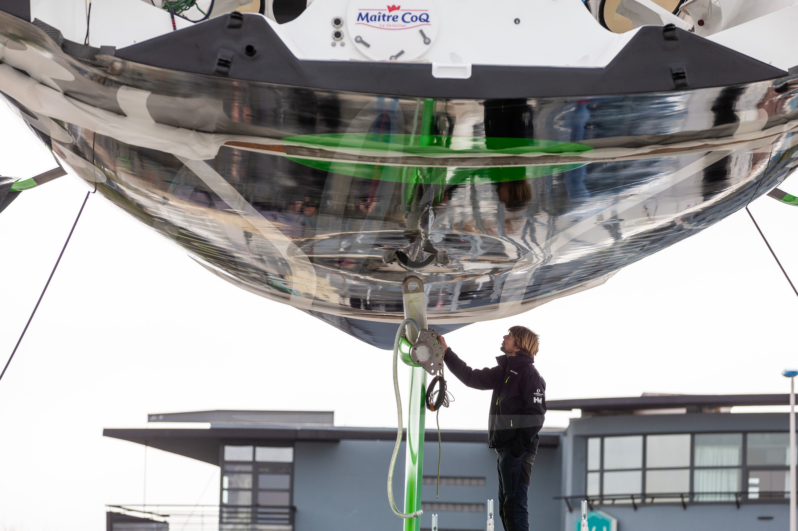 Description | LA ROCHELLE, FRANCE - MARCH 11: The Imoca boat Maitre Coq is being prepared by skipper Yannick Bestaven and his crew before her launching, on March 11, 2020, in La Rochelle, France. (Photo by Jean-Marie Liot/Alea) |