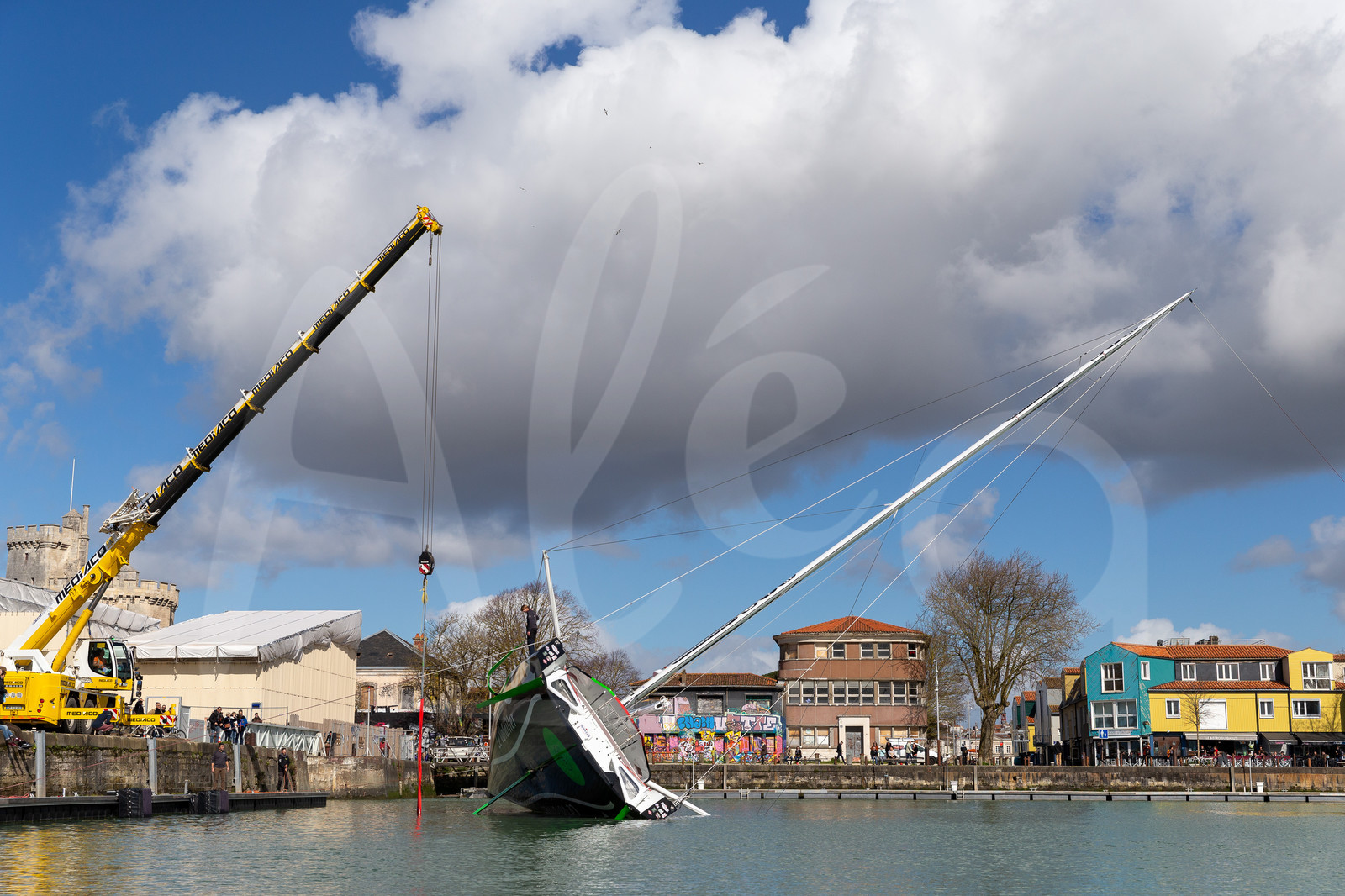 Description | LA ROCHELLE, FRANCE - MARCH 13: Imoca boat Maitre Coq is having a straightening test powered by a crane, on March 13, 2020, in La Rochelle, France. (Photo by Jean-Marie Liot/Alea) |