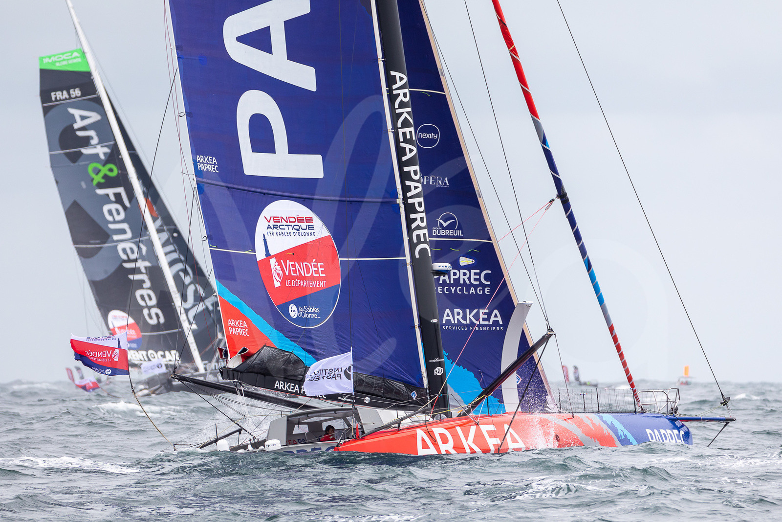 Description | LES SABLES D'OLONNE, FRANCE - JULY 4: Arkea Paprec and Newrest - Art et Fenetres are taking the start of the Vendee Arctique solo sailing race, off Les Sables d'Olonne, France, on July 4, 2020. (Photo by Jean-Marie Liot/Alea) |