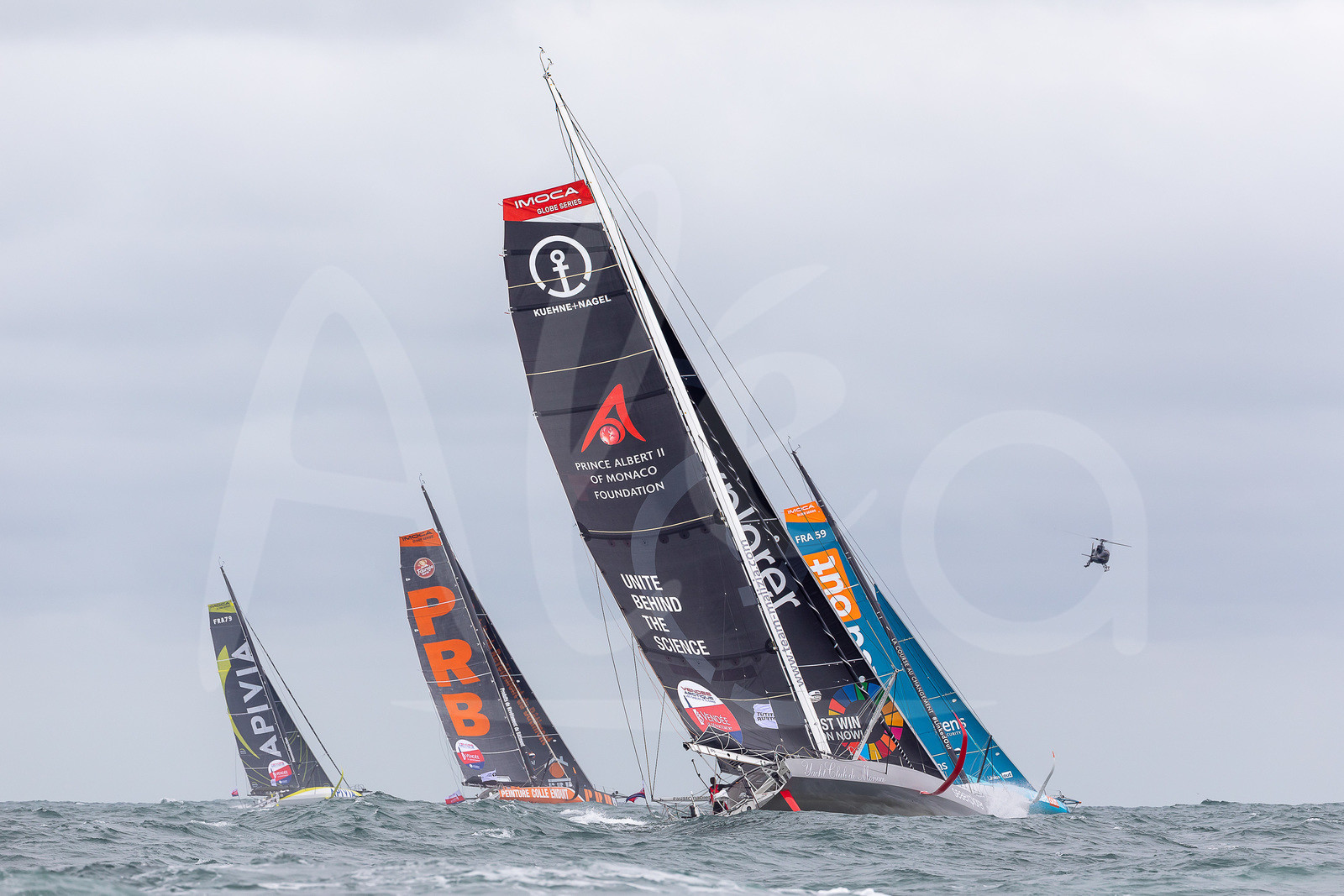 Description | LES SABLES D'OLONNE, FRANCE - JULY 4: Sea Explorer - YC de Monaco, LinkedOut, PRB and Apivia are taking the start of the Vendee Arctique solo sailing race, off Les Sables d'Olonne, France, on July 4, 2020. (Photo by Jean-Marie Liot/Alea) |