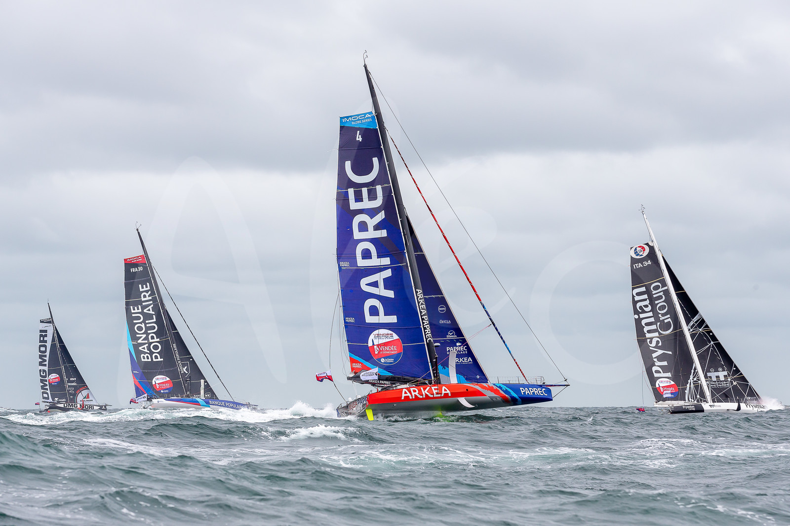 Description | LES SABLES D'OLONNE, FRANCE - JULY 4: Arkea Paprec, skipper Sebastien Simon (FRA) is taking the start of the Vendee Arctique solo sailing race, off Les Sables d'Olonne, France, on July 4, 2020. (Photo by Jean-Marie Liot/Alea) |