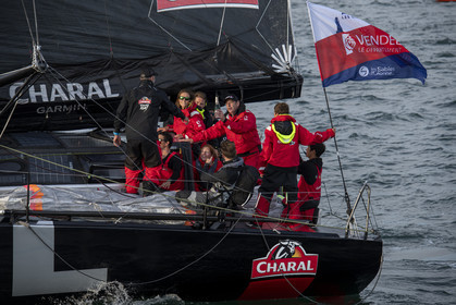 Jeremie Beyou remporte la course avec Charal, Charlie Dalin et son Apivia bien né prend la deuxième place, et Thomas Ruyant avec son prometteur LinkedOut complète le podium.