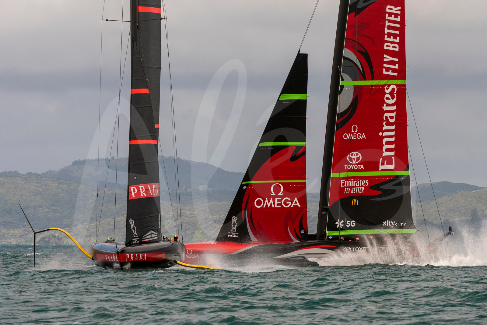 | Description | AUCKLAND, NEW-ZEALAND - DECEMBER 10: Emirates Team New Zealand and Luna Rossa Prada Pirelli Team in pre start for a practice race start. America's Cup Challengers and the Defender participate in organised practice on the course E race area for the Prada Cup and America's Cup, off Auckland, New-Zealand, on December 10, 2020. (photo by Chris Cameron/Alea) |