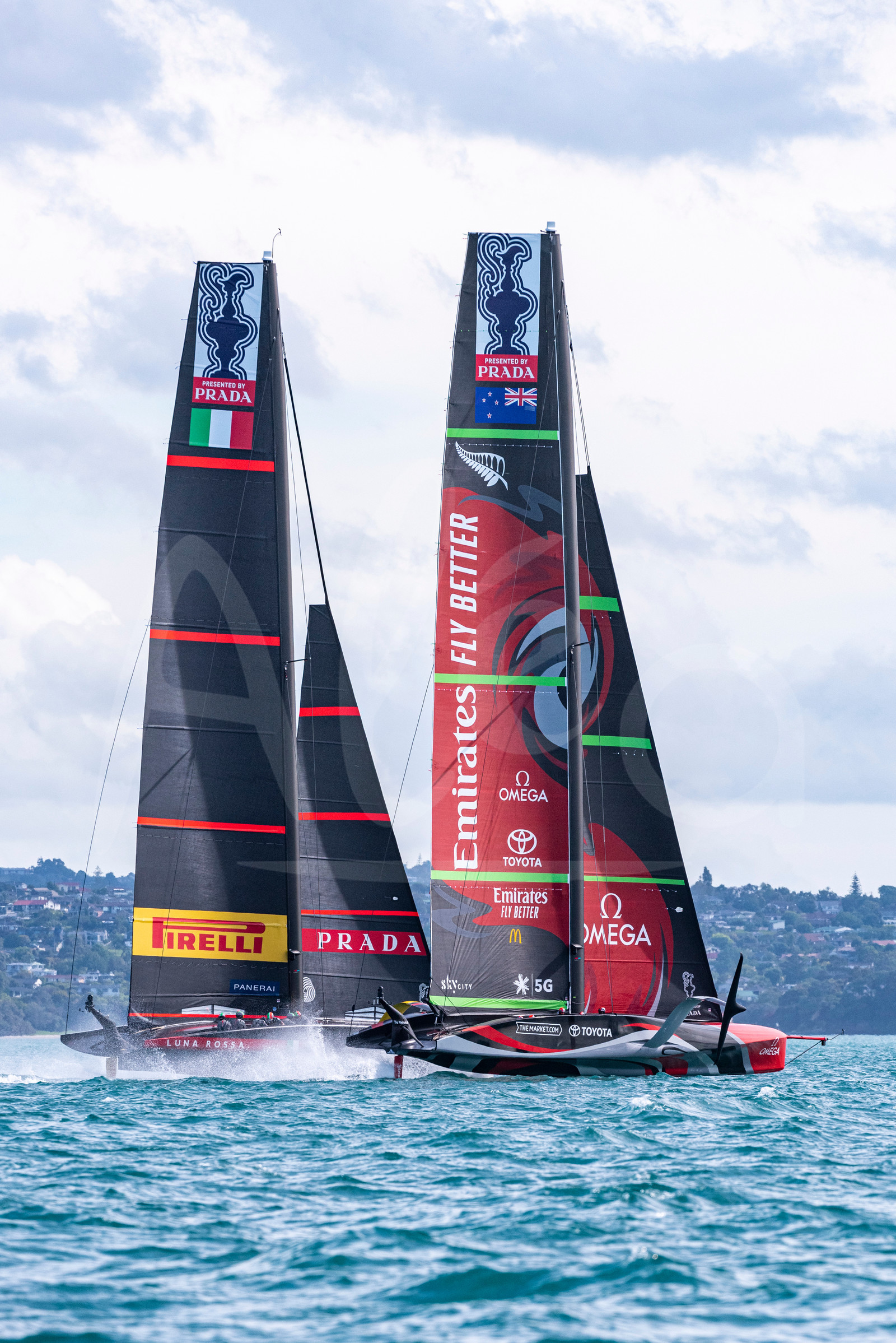 | Description | AUCKLAND, NEW-ZEALAND - DECEMBER 8: Emirates Team New Zealand and Luna Rossa Prada Pirelli Team start a practice race. America's Cup Challengers and the Defender participate in organised practice on the course E race area for the Prada Cup and America's Cup, off Auckland, New-Zealand, on December 8, 2020. (photo by Chris Cameron/Alea) |