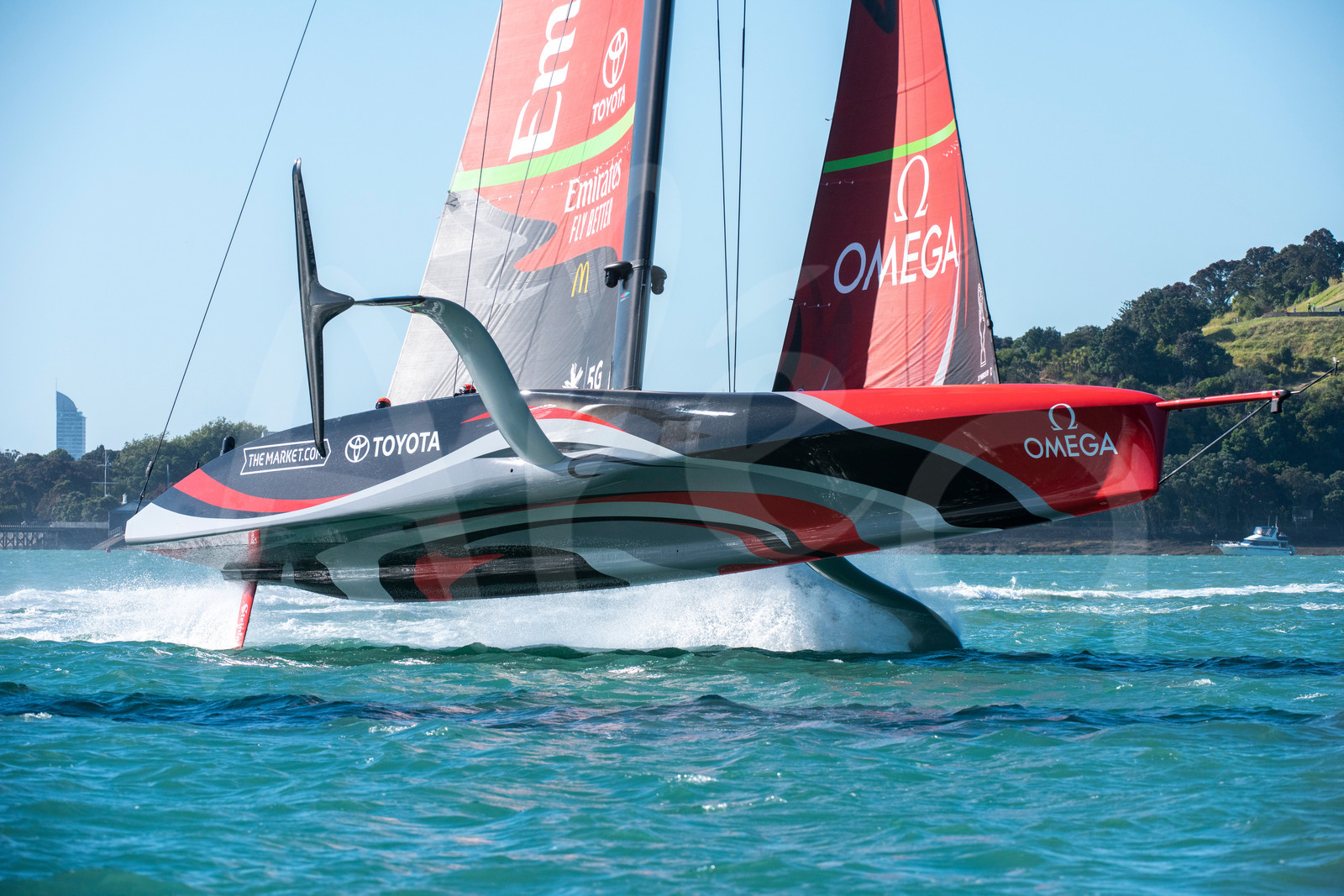 | Description | AUCKLAND, NEW-ZEALAND - DECEMBER 17: AEmirates Team New Zealand makes up lost distance on the last up wind leg against American Magic, during PRADA America's Cup World Series Auckland Race Day One in Auckland, New-Zealand, on December 17, 2020. (photo by Chris Cameron/Alea) |