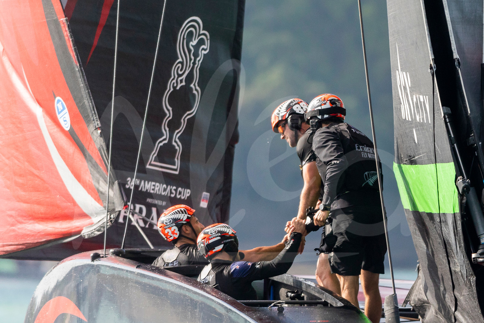 | Description | AUCKLAND, NEW-ZEALAND - DECEMBER 18: Emirates Team New Zealand are celebrating during the 36th America’s Cup presented by Prada in Auckland, New-Zealand, on December 18, 2020. (photo by Stefano Gattini/Alea) |