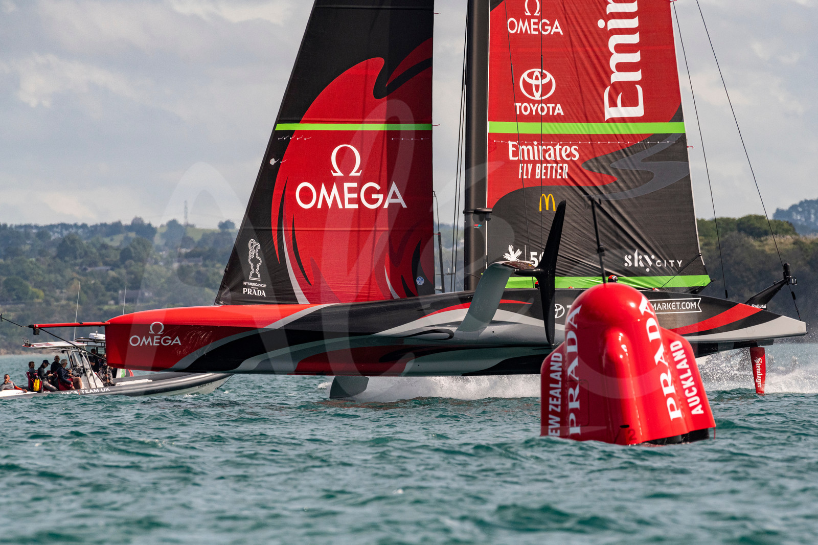 | Description | AUCKLAND, NEW-ZEALAND - DECEMBER 8: Emirates Team New Zealand entering a start sequence against American Magic. America's Cup Challengers and the Defender participate in organised practice on the course E race area for the Prada Cup and America's Cup, off Auckland, New-Zealand, on December 8, 2020. (photo by Chris Cameron/Alea) |