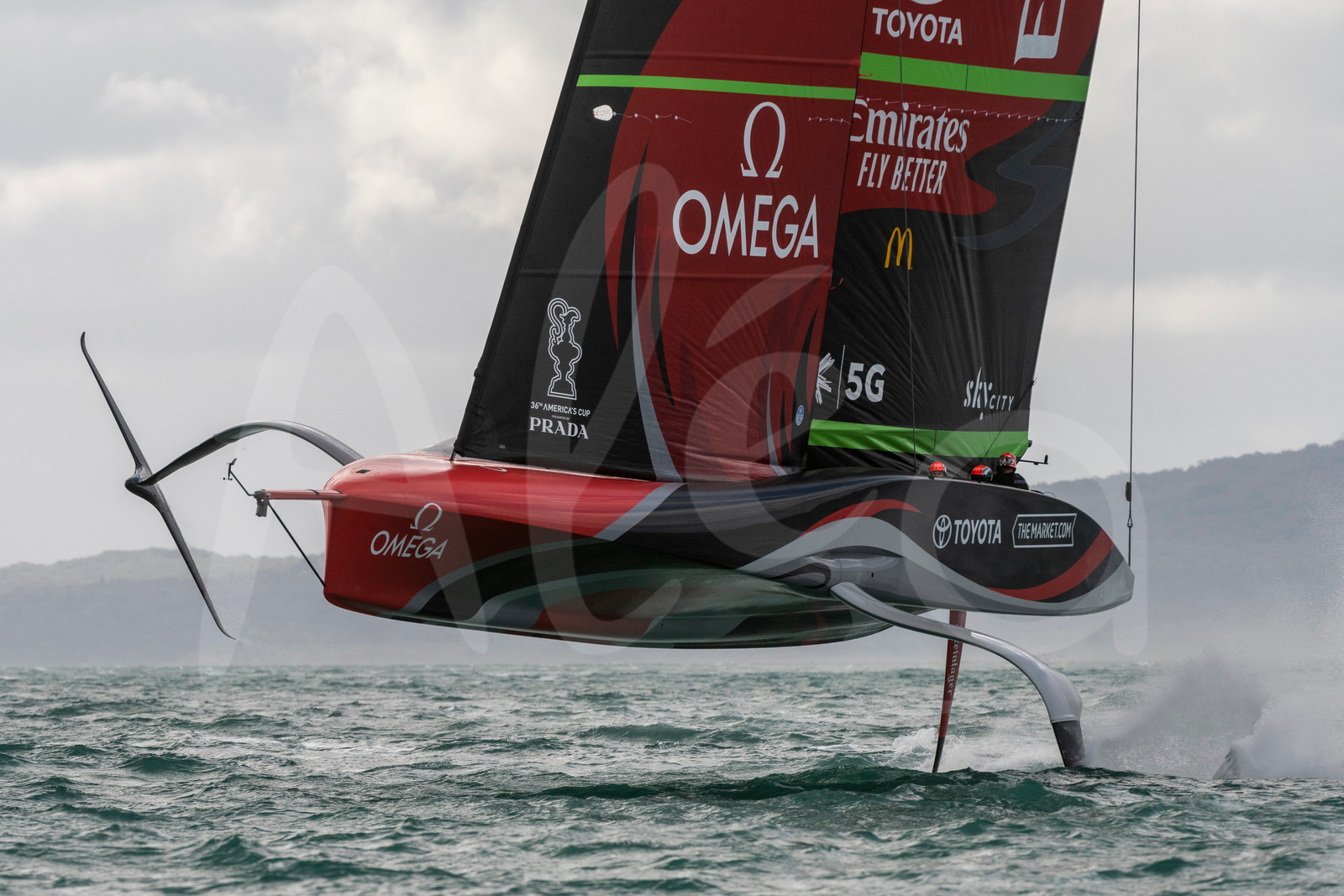 | Description | AUCKLAND, NEW-ZEALAND - DECEMBER 10: Emirates Team New Zealand flying high on Starboard entry for a practice race against Luna Rossa Prada Pirelli Team. America's Cup Challengers and the Defender participate in organised practice on the course E race area for the Prada Cup and America's Cup, off Auckland, New-Zealand, on December 10, 2020. (photo by Chris Cameron/Alea) |