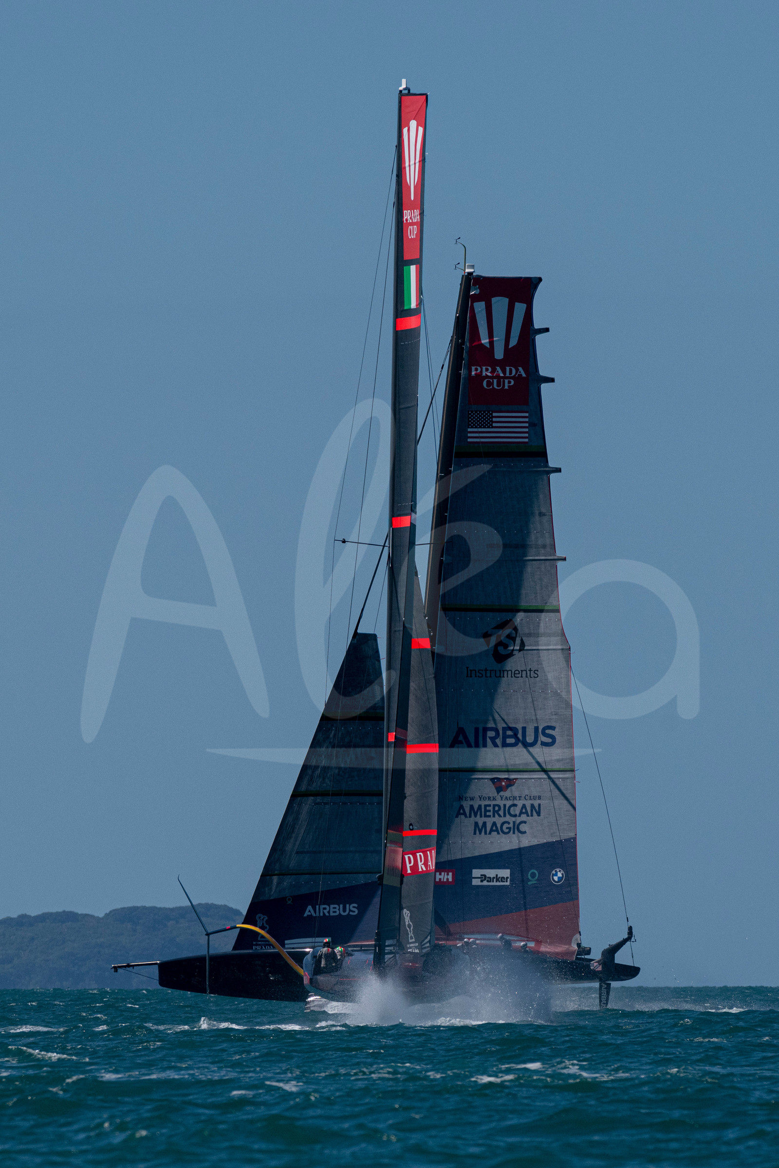 Description | AUCKLAND, NEW-ZEALAND - JANUARY 11: American Magic Patriot and Luna Rossa Prada Pirelli Team are pictured during an America's Cup practice session on the Waitemata Harbour off Auckland, New-Zealand, on January 11, 2021. (photo by Chris Cameron/Alea) |