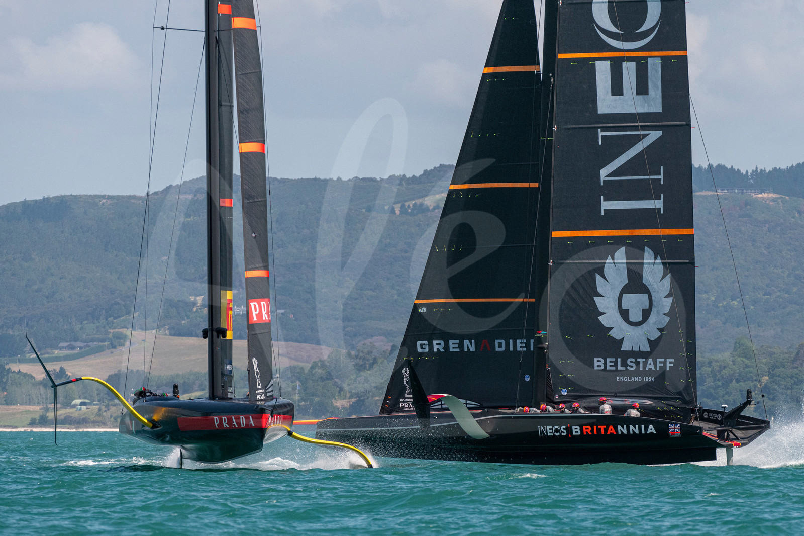 Description | AUCKLAND, NEW-ZEALAND - JANUARY 12: Luna Rossa Prada Pirelli Team and INEOS Team UK are pictured during an America's Cup practice session on the Waitemata Harbour off Auckland, New-Zealand, on January 12, 2021. (photo by Chris Cameron/Alea) |