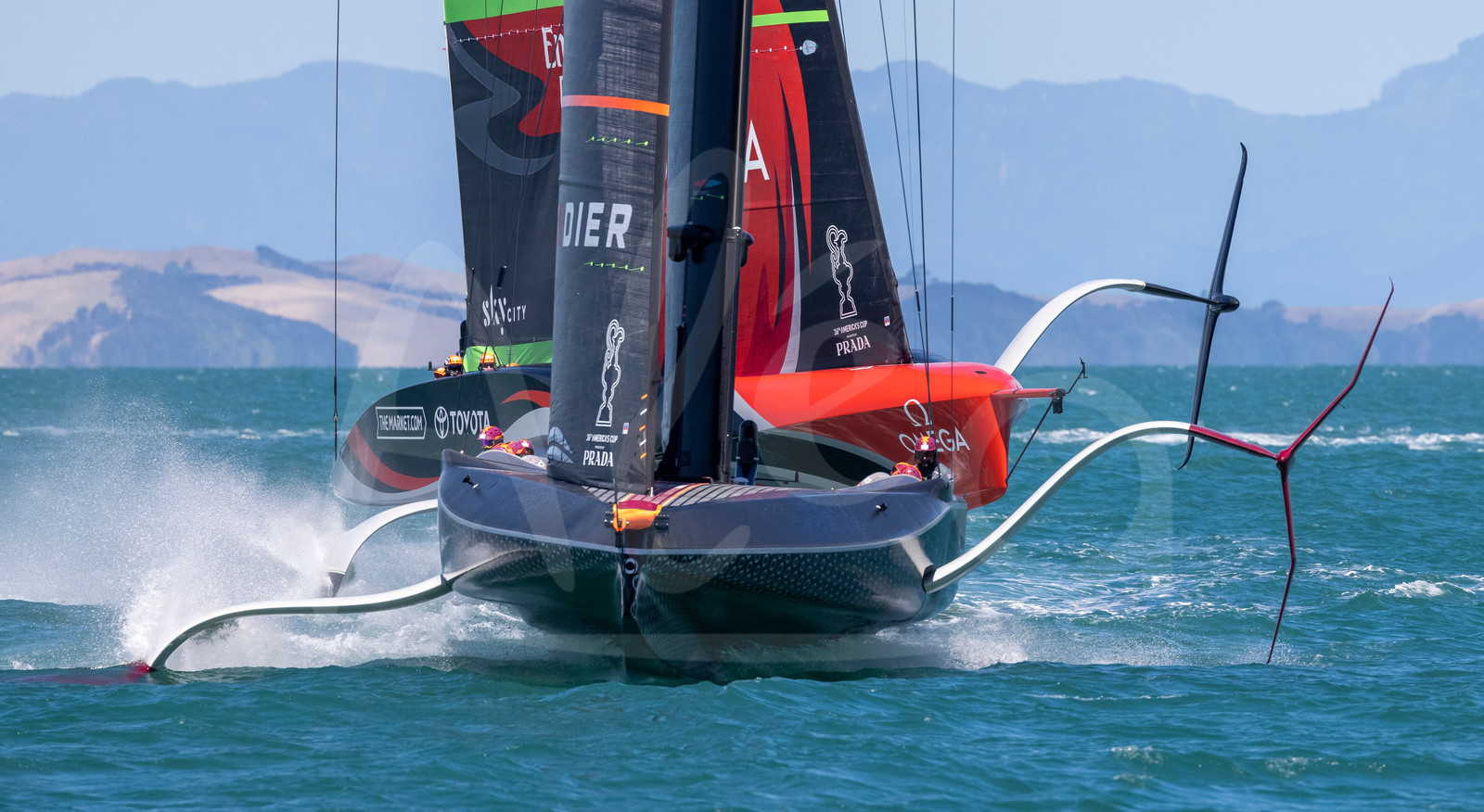 Description | AUCKLAND, NEW-ZEALAND - JANUARY 11: Ineos Team UK and Emirates Team New Zealand are pictured during America's Cup presented by Prada training day 1, off Auckland, New-Zealand, on January 11, 2021. (photo by Carlo Borlenghi/Alea) . |